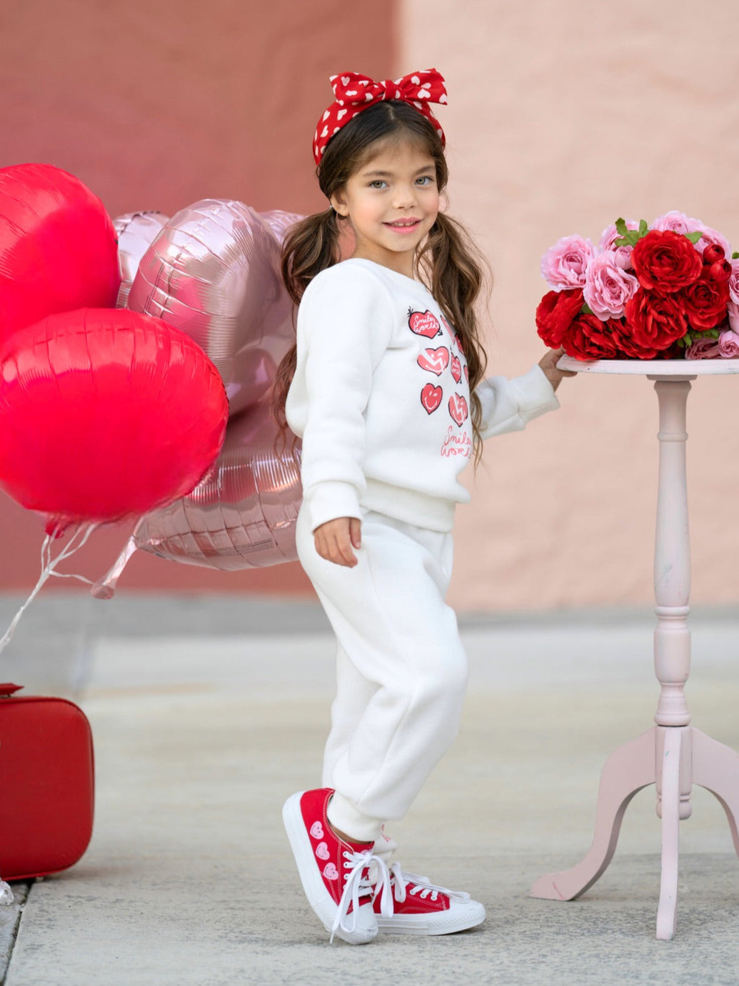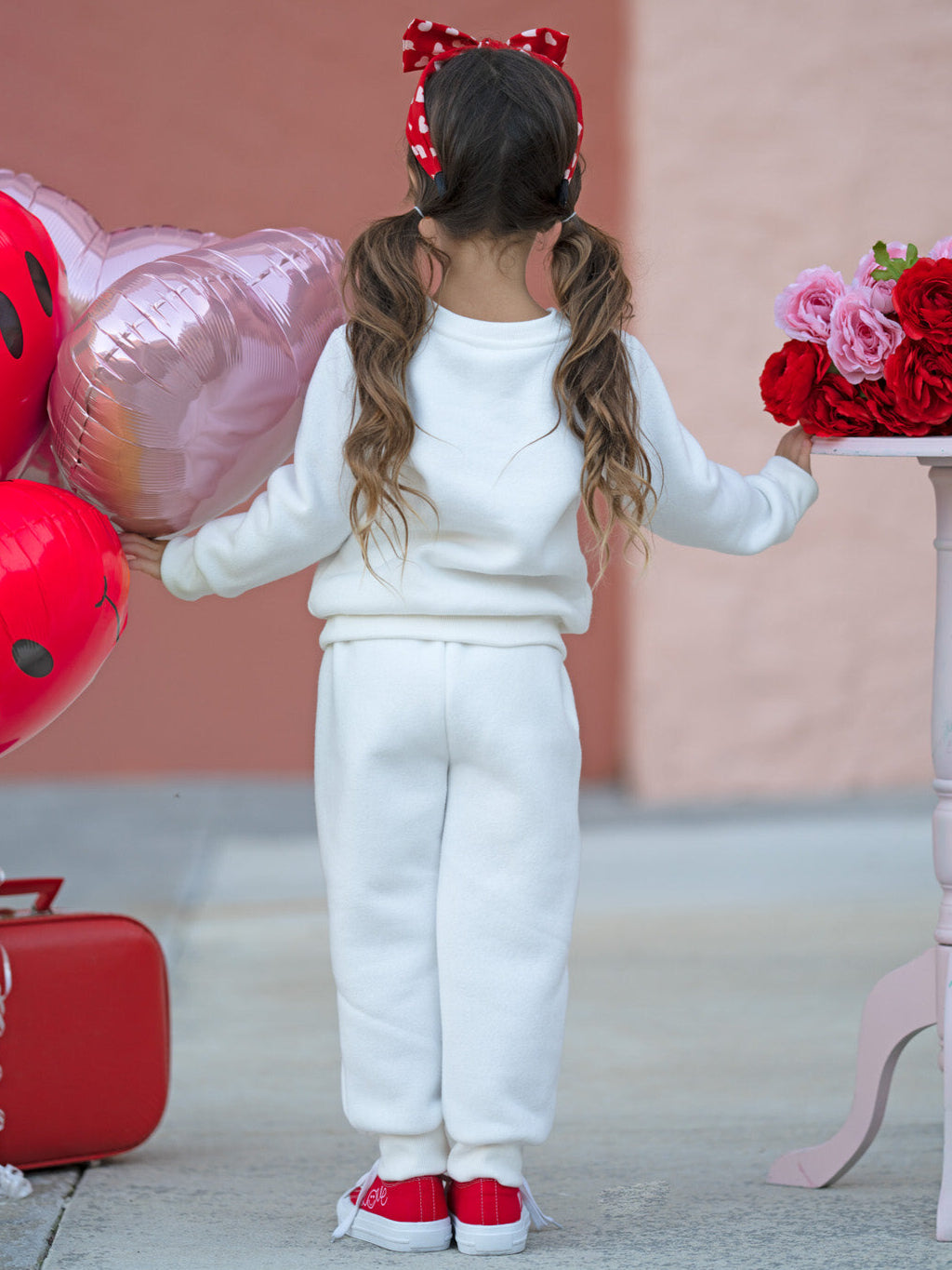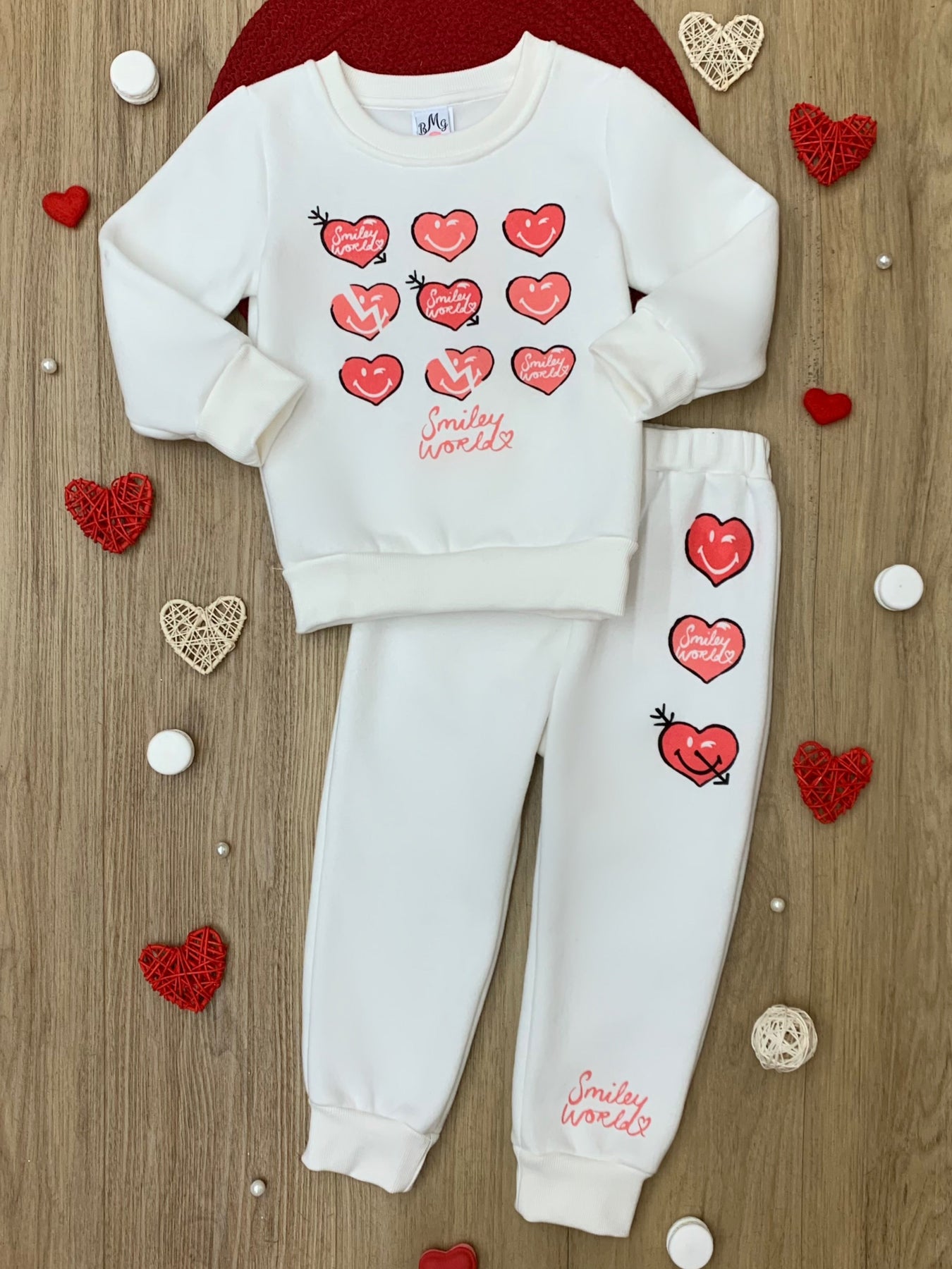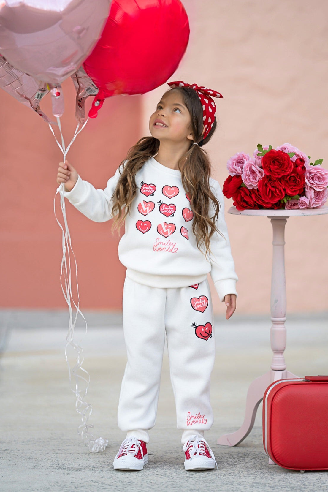 - White SmileyWorld® jogger set with Smiley icons and Love embroidery on the chest.