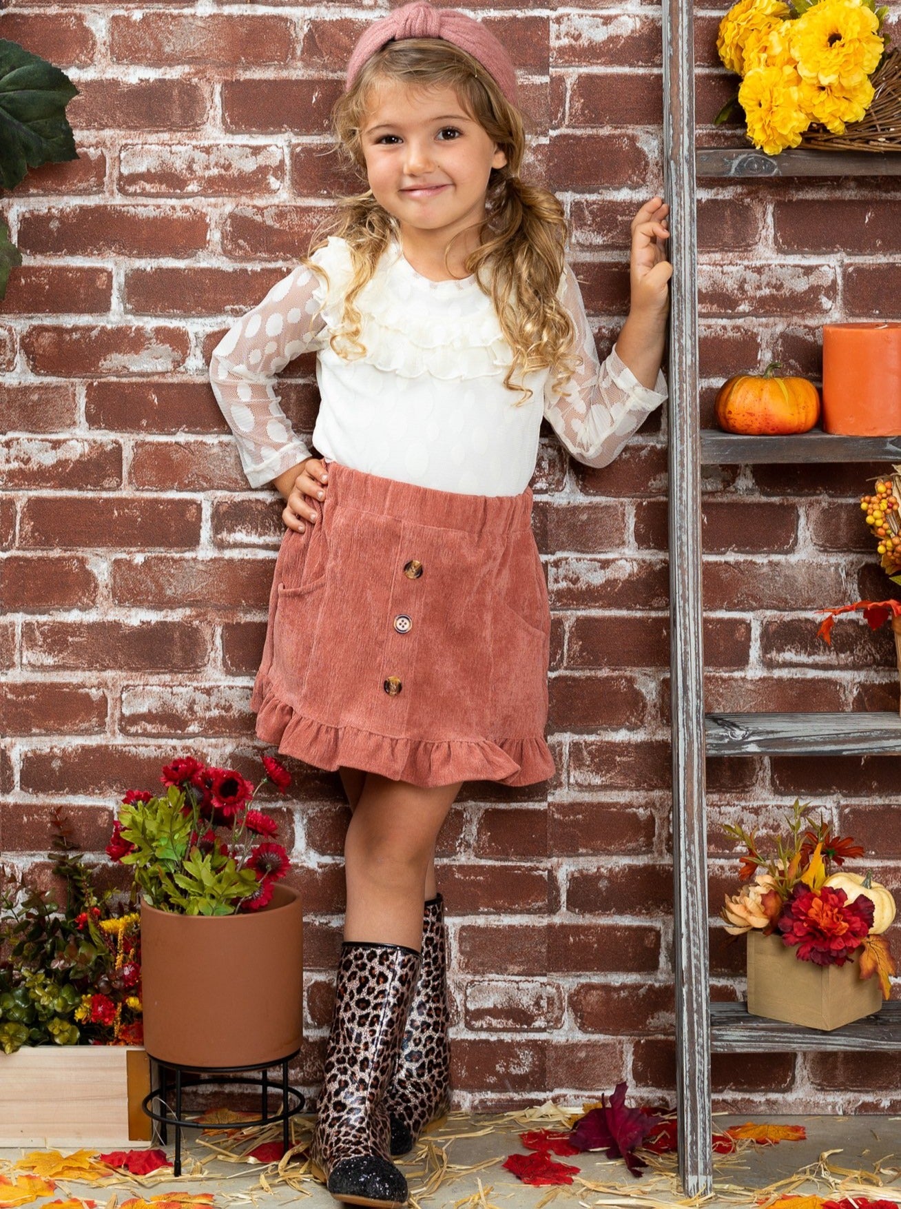 - A cute velvet skirt set is awesome, but one WITH POCKETS is simply a must-have for every little girl. The swiss dot tulle top only makes it better. Make sure you grab yours today!