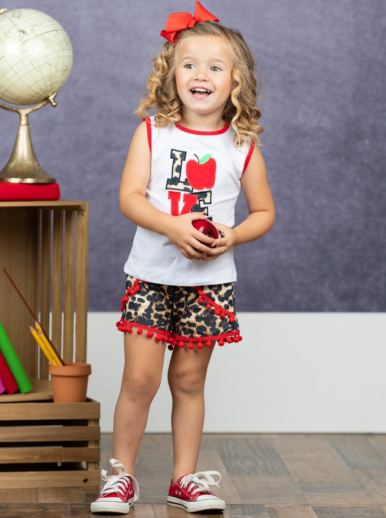 First Day of School | Love Top & Pom Pom Short Set | Mia Belle Girls