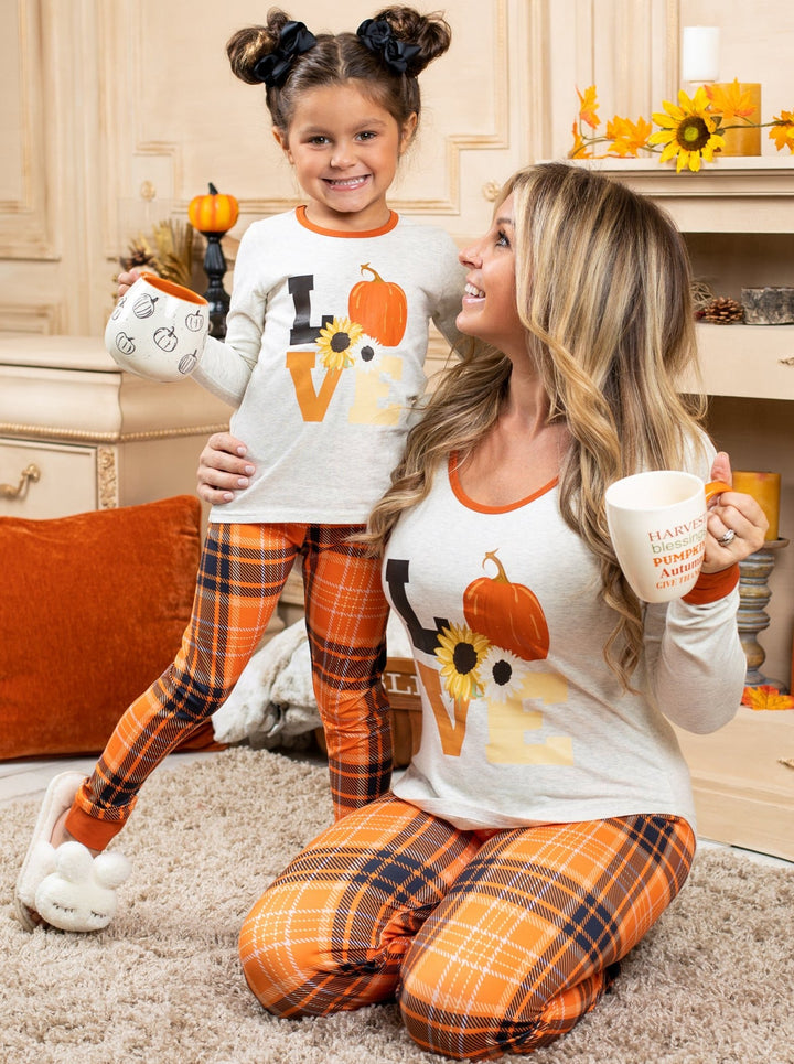 Mommy and Me Matching Fall Pajamas | Fall Love Plaid Pajama Set