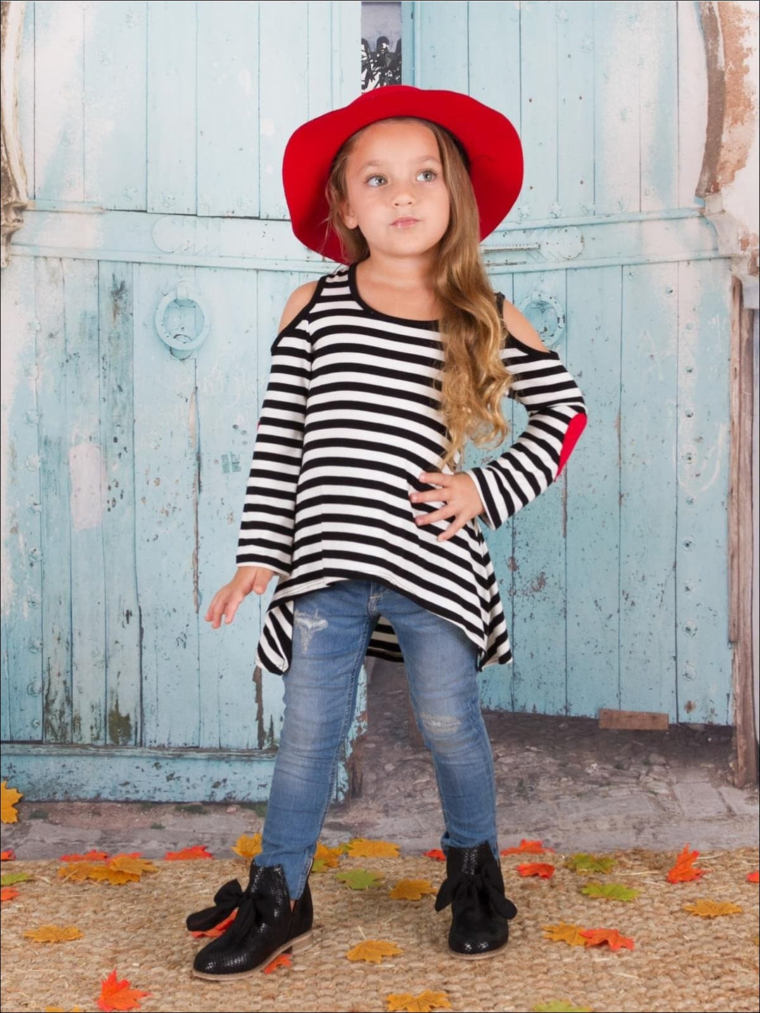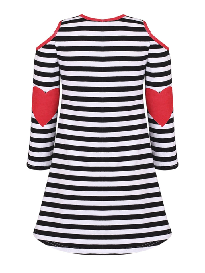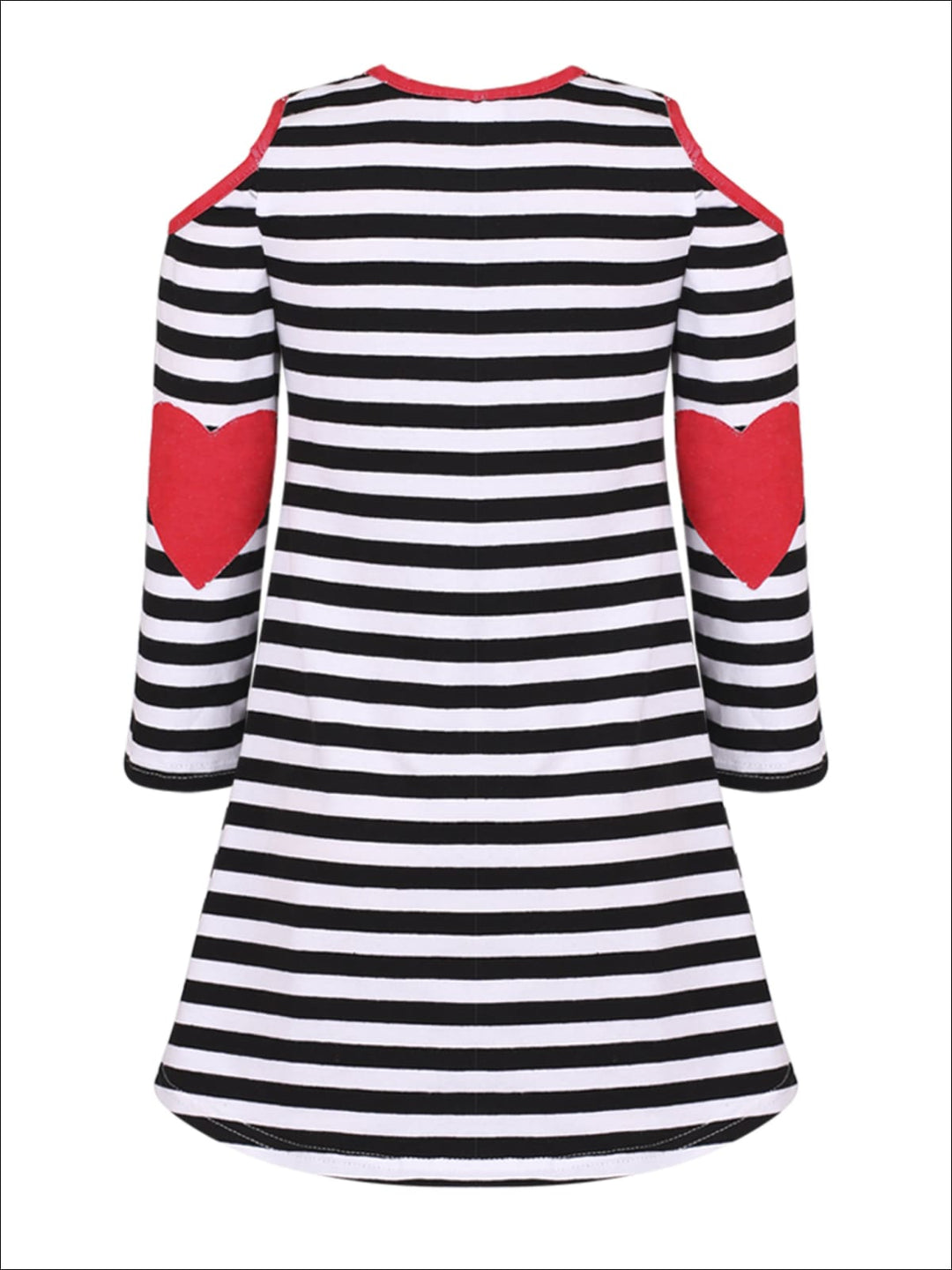 Matching with your mini has never looked so cute! Our long-sleeve hi-lo striped elbow heart patch cold shoulder tunic is a chic, comfortable, and very trendy look girls & mommies will love to wear everywhere!