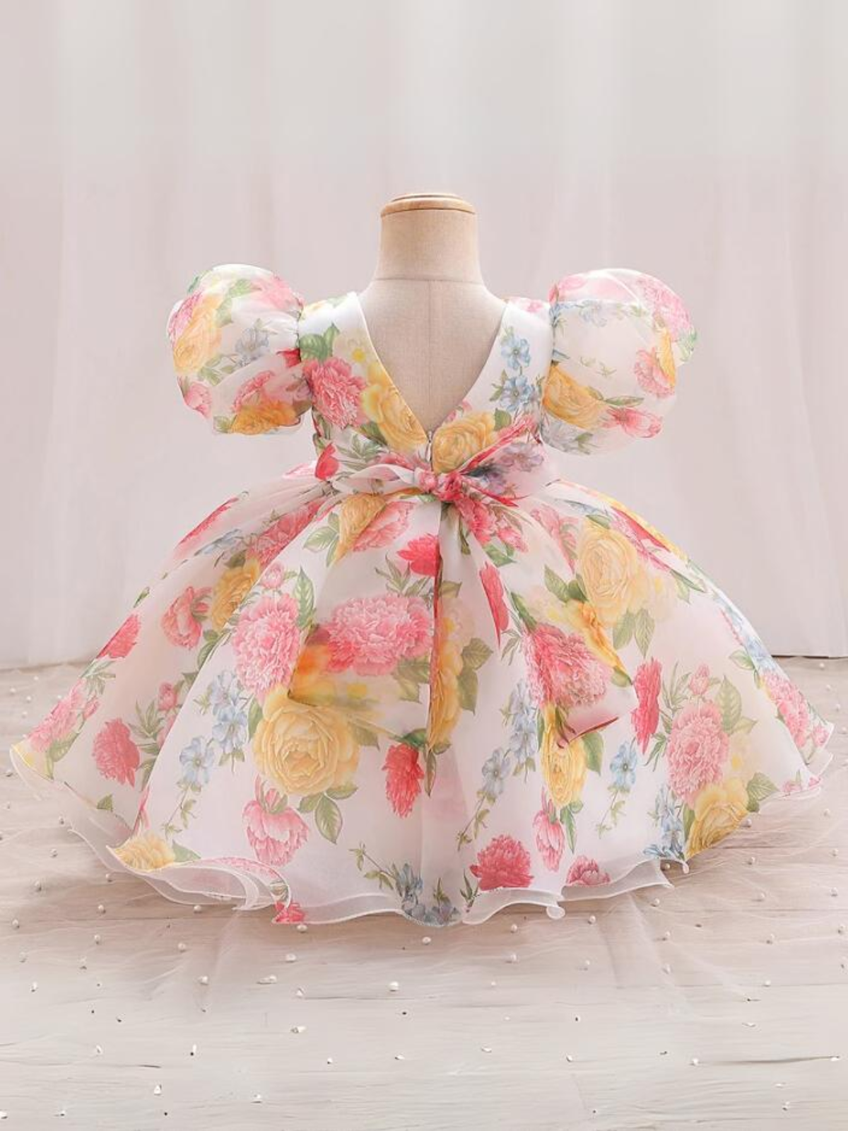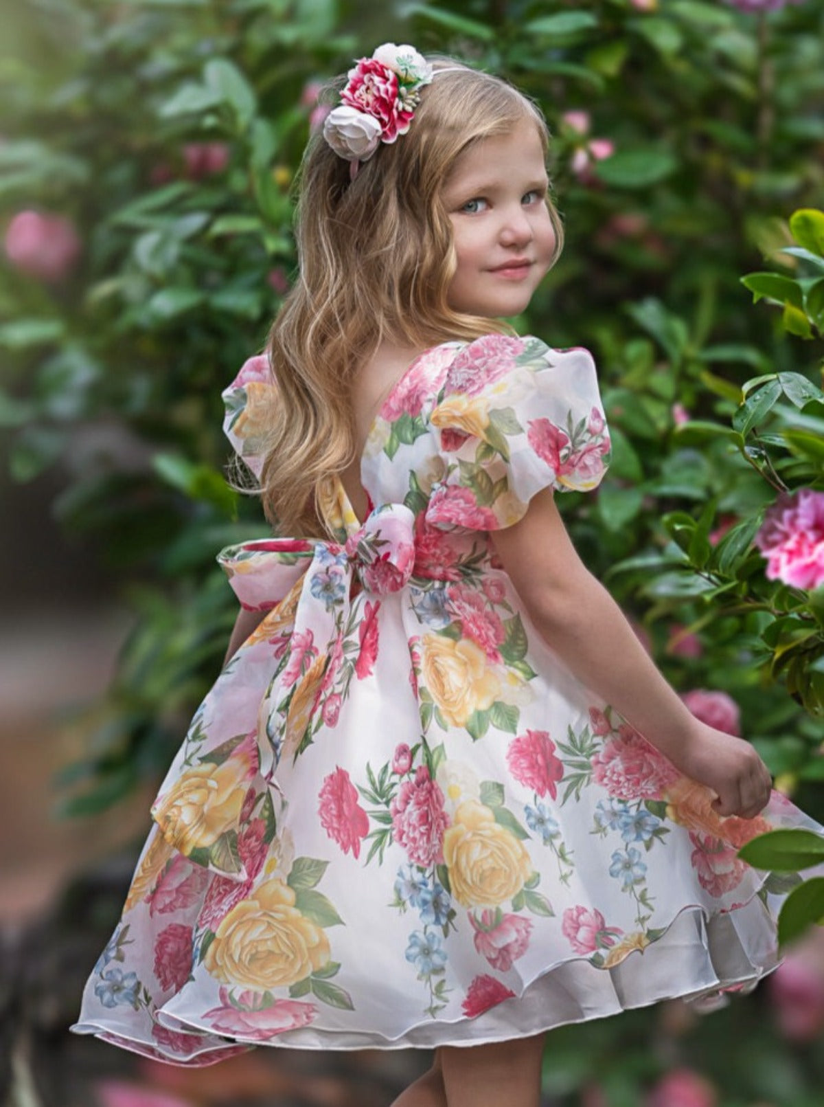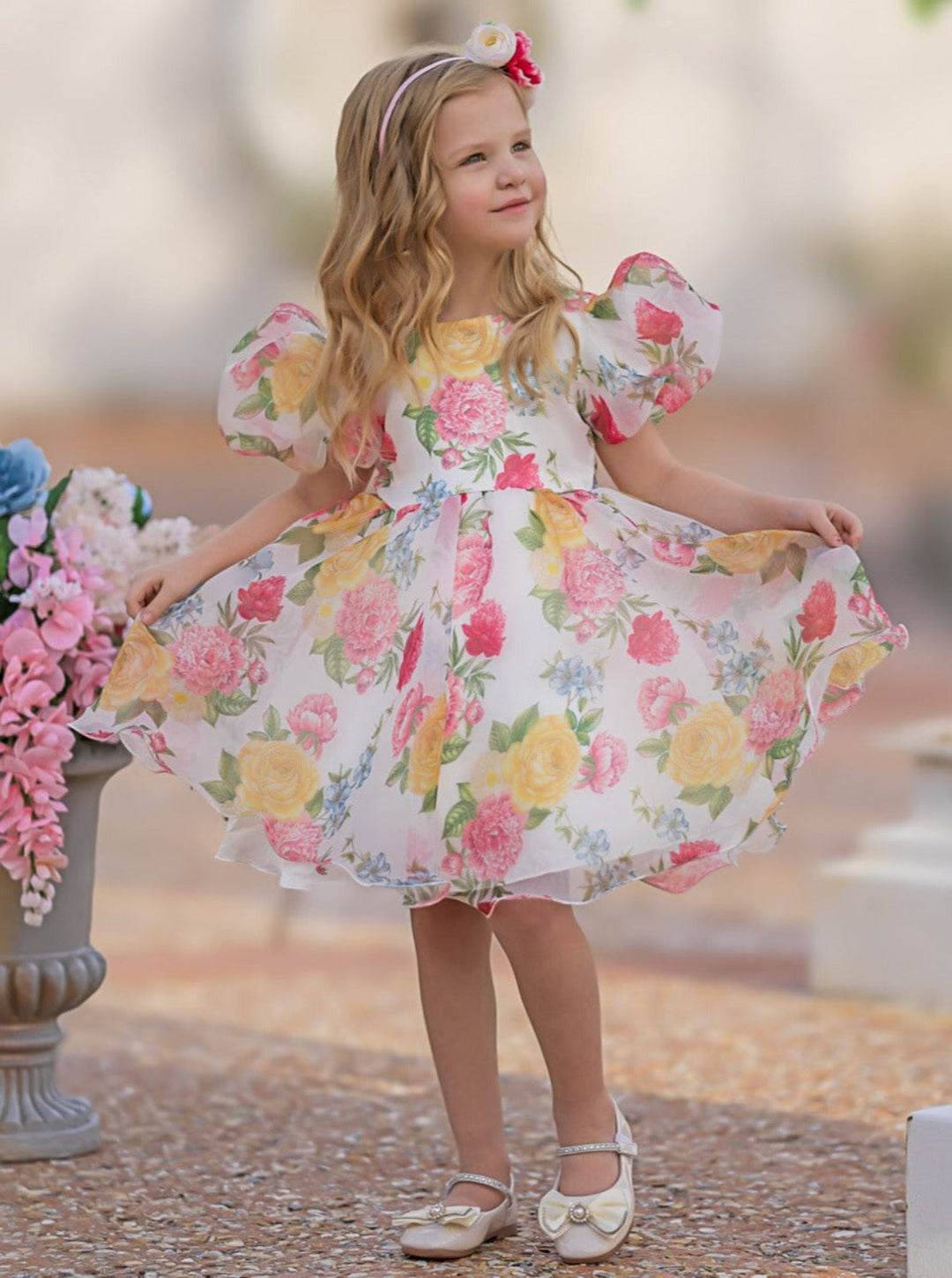 Mia Belle Girls Puff Sleeve Floral Dress | Girls Spring Dresses