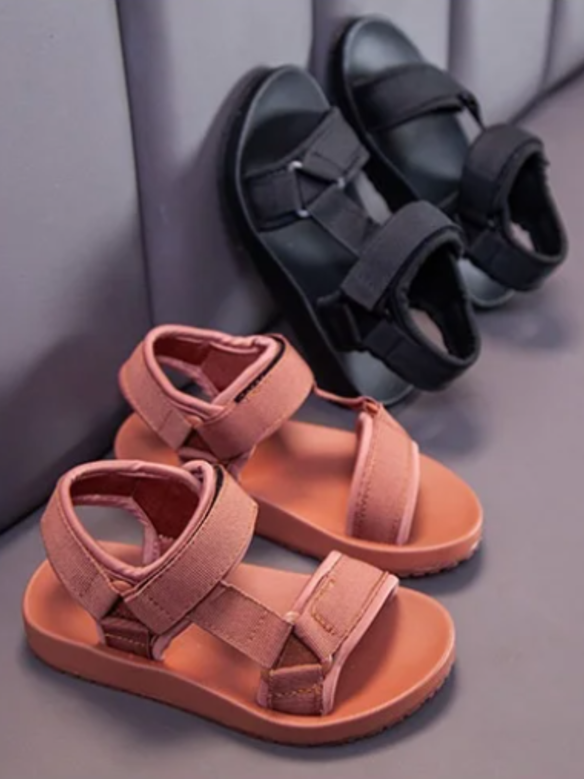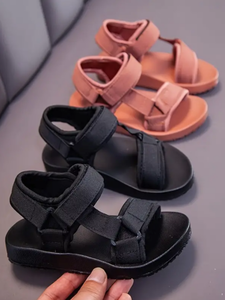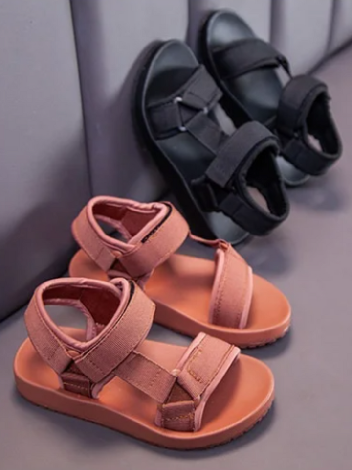 - Thoughtfully designed for active girls, these sandals combine functionality with a fashionable touch, available in black, rose, and taupe.