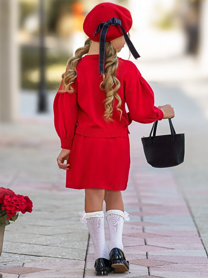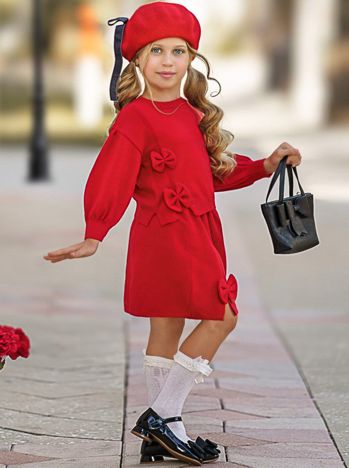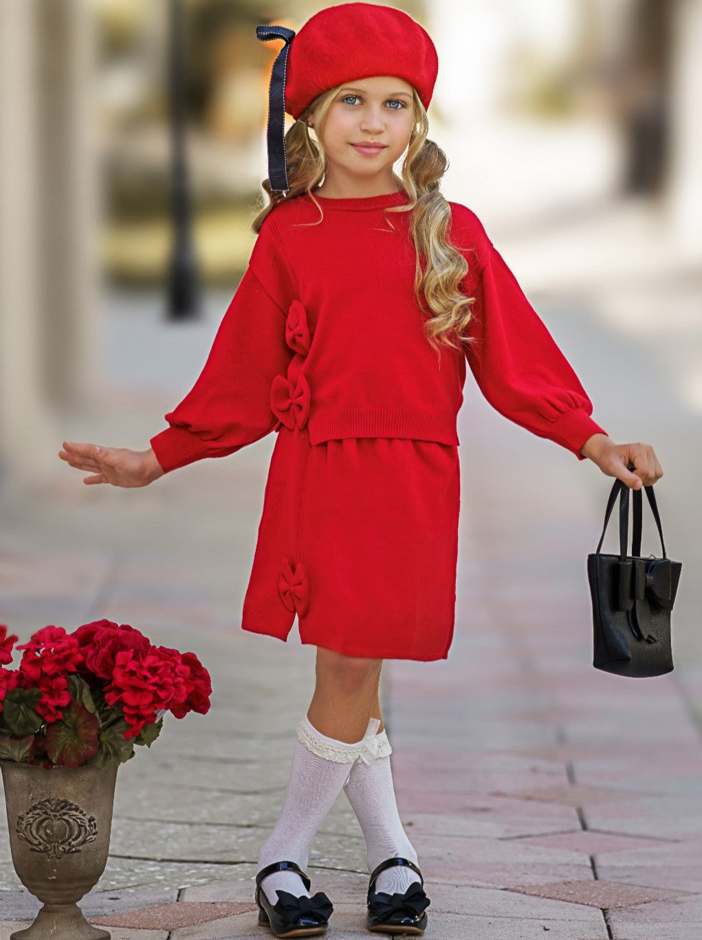 Are you ready for this oh-so-precious sweater and skirt set? Baby girls will look sharp in this stunning set featuring a cozy bow-embellished sweater along with a matching skirt. Wear this with lovely boots for a more stylish outfit.