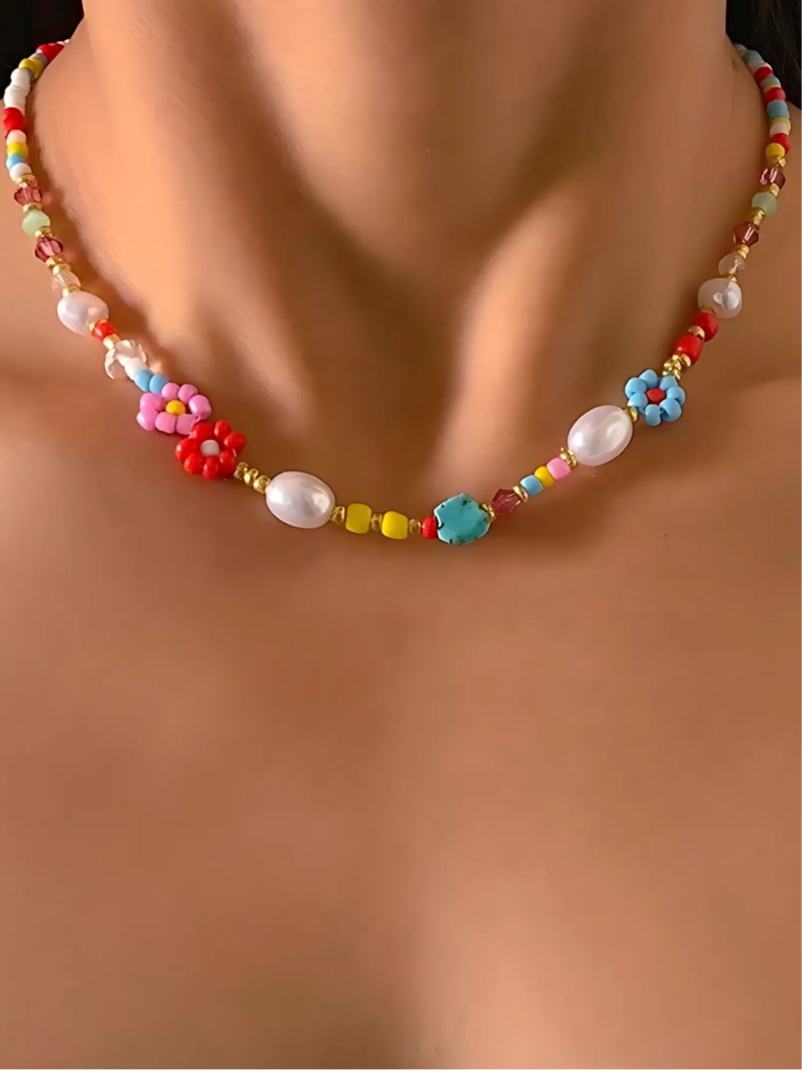 • Add a playful yet elegant touch to your jewelry collection with this colorful handmade beaded choker!