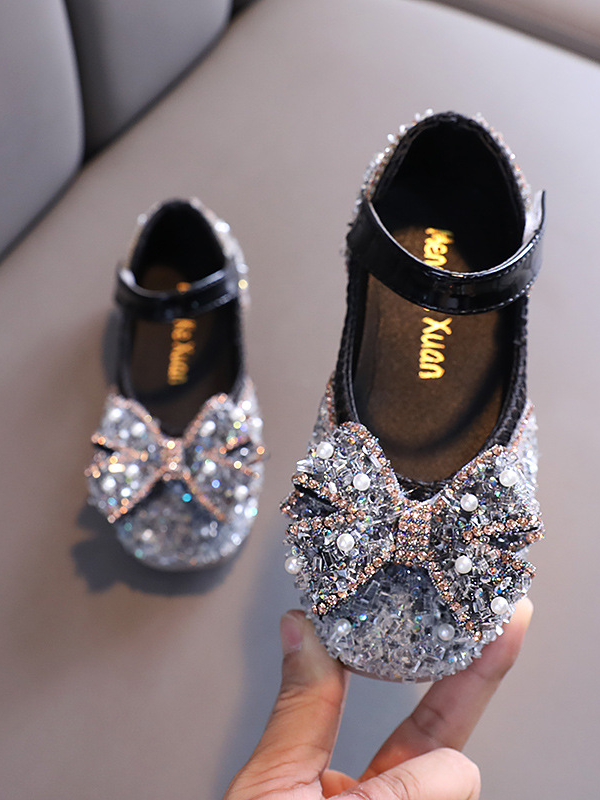Bedazzled steps all day in our sparkly bow Mary Jane shoes. Glittering strides, an adorable bow, and a timeless look make the perfect footwear combo. A fashion treat for pampered princesses!