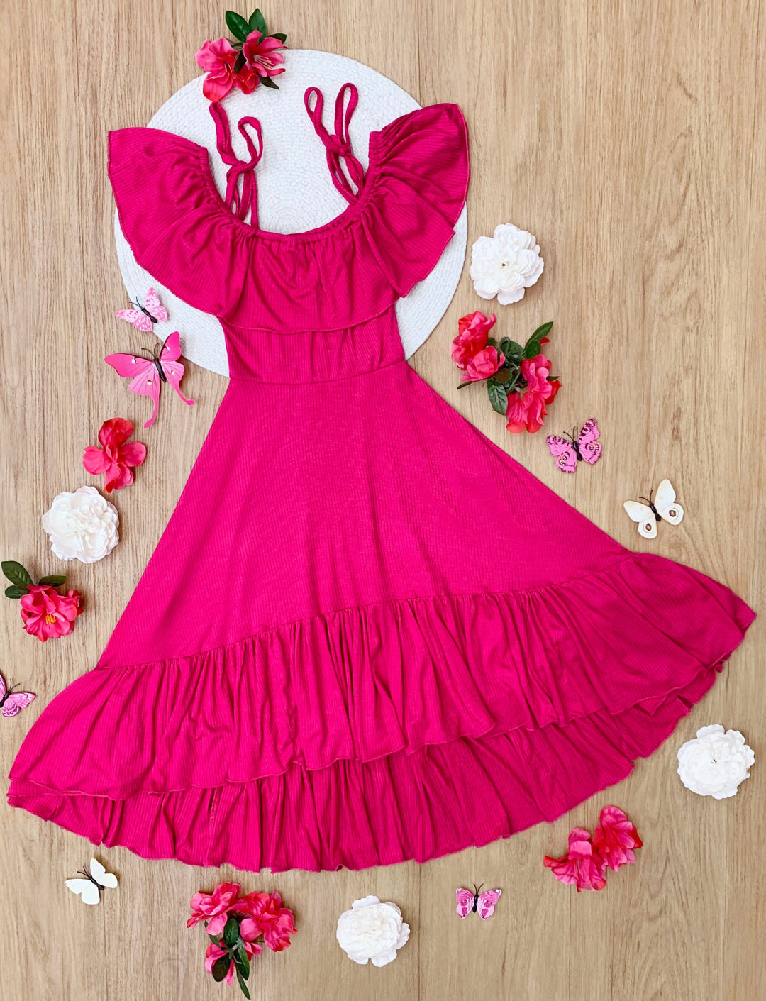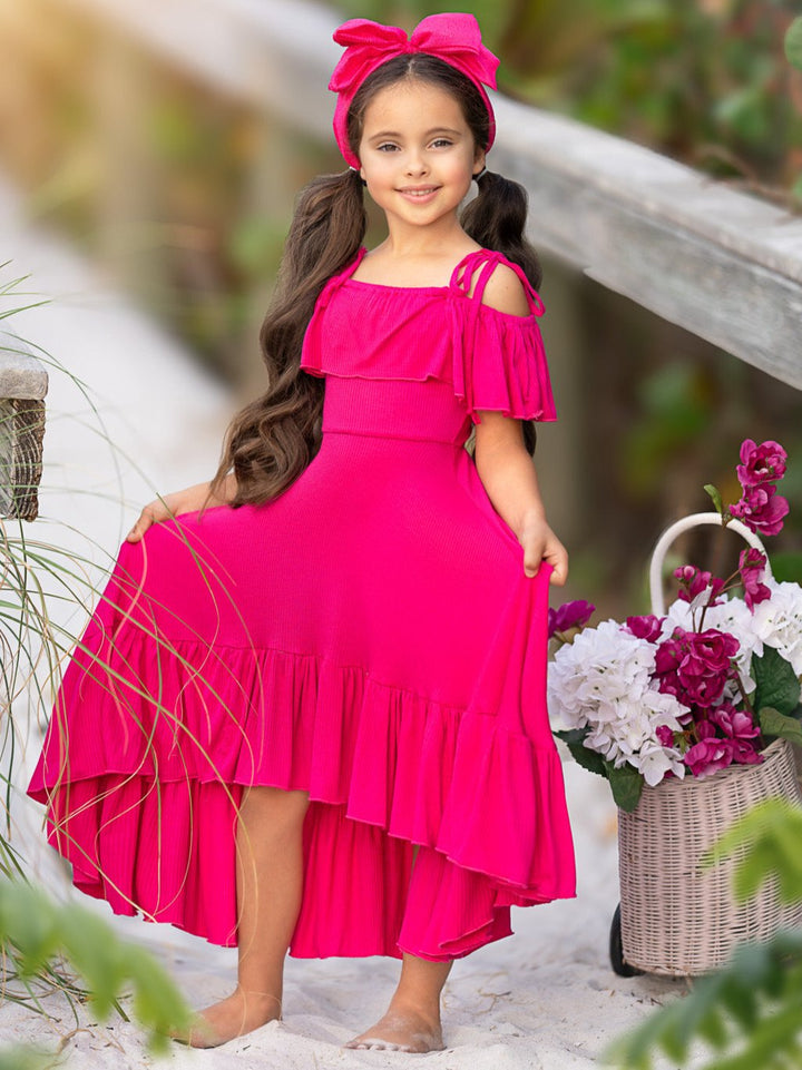 Bright and bold, the Berry Bliss Hi-Lo Ruffle Dress is a stunning choice for her summer wardrobe.
