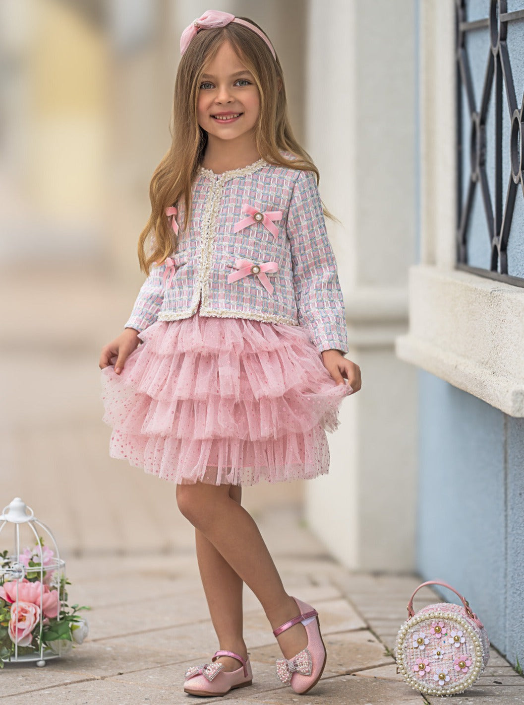 Preppy Ballet Tweed Blazer and Tutu Skirt Set