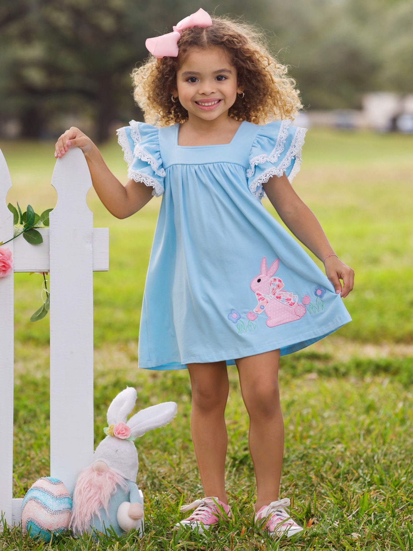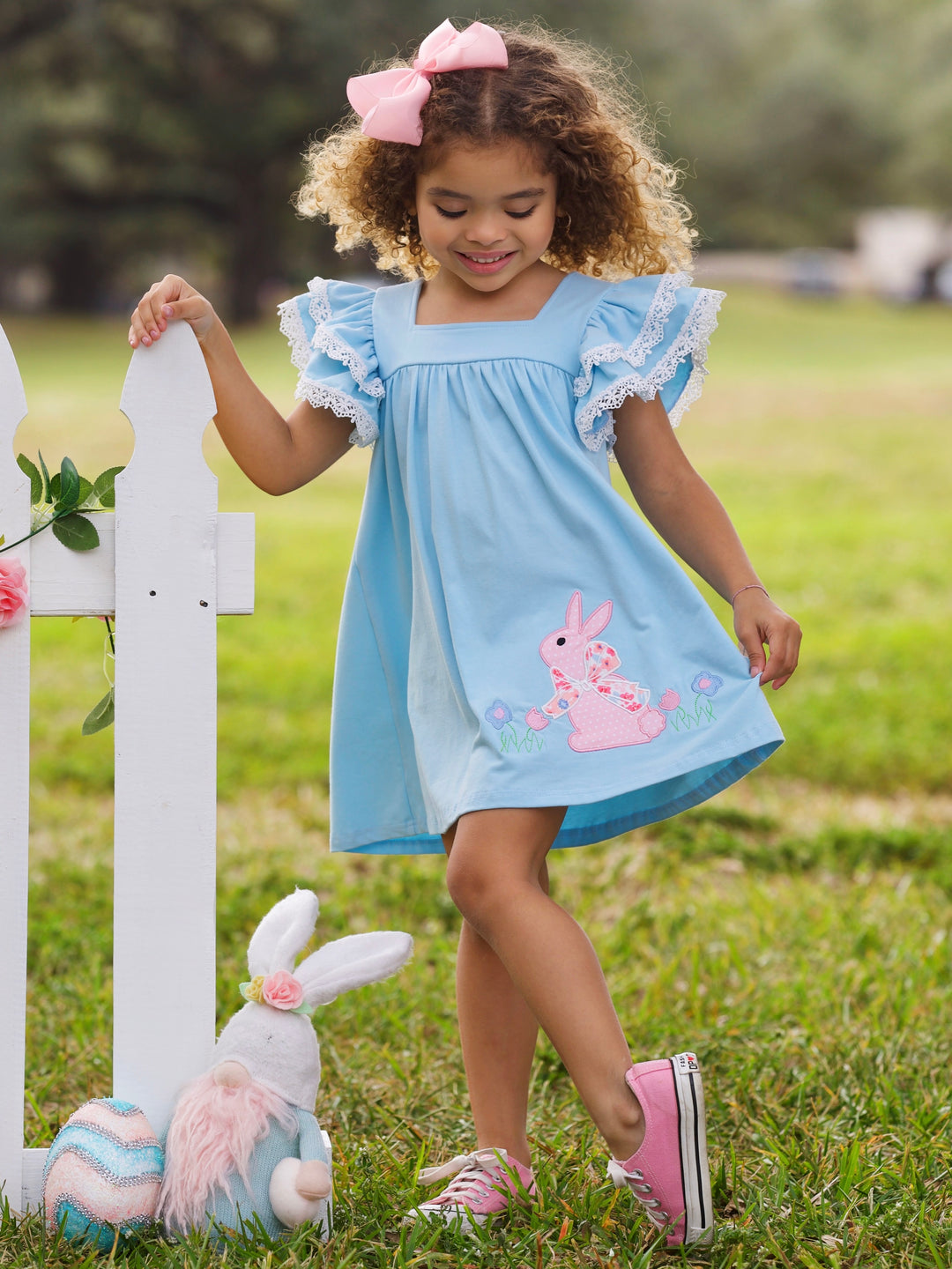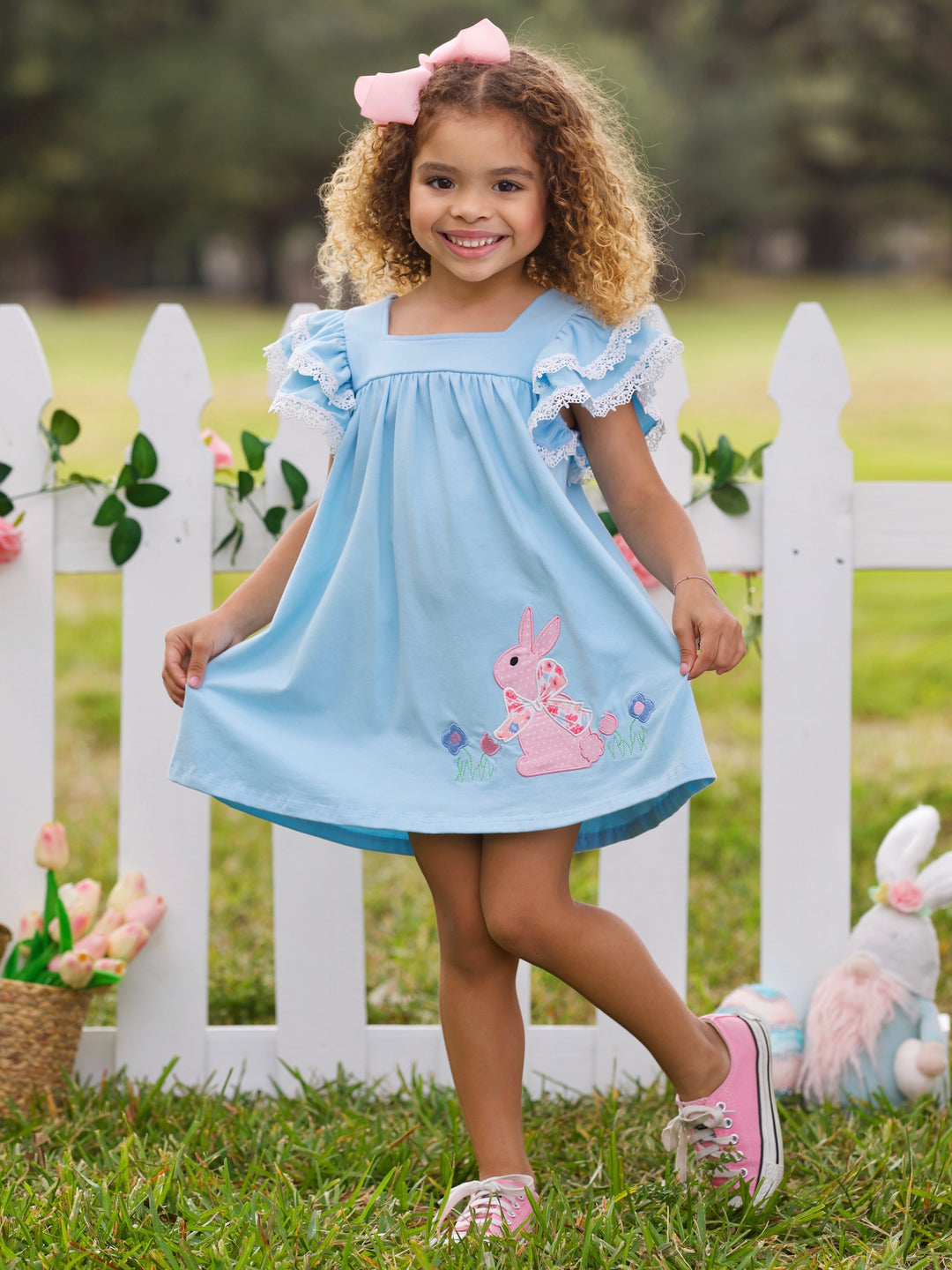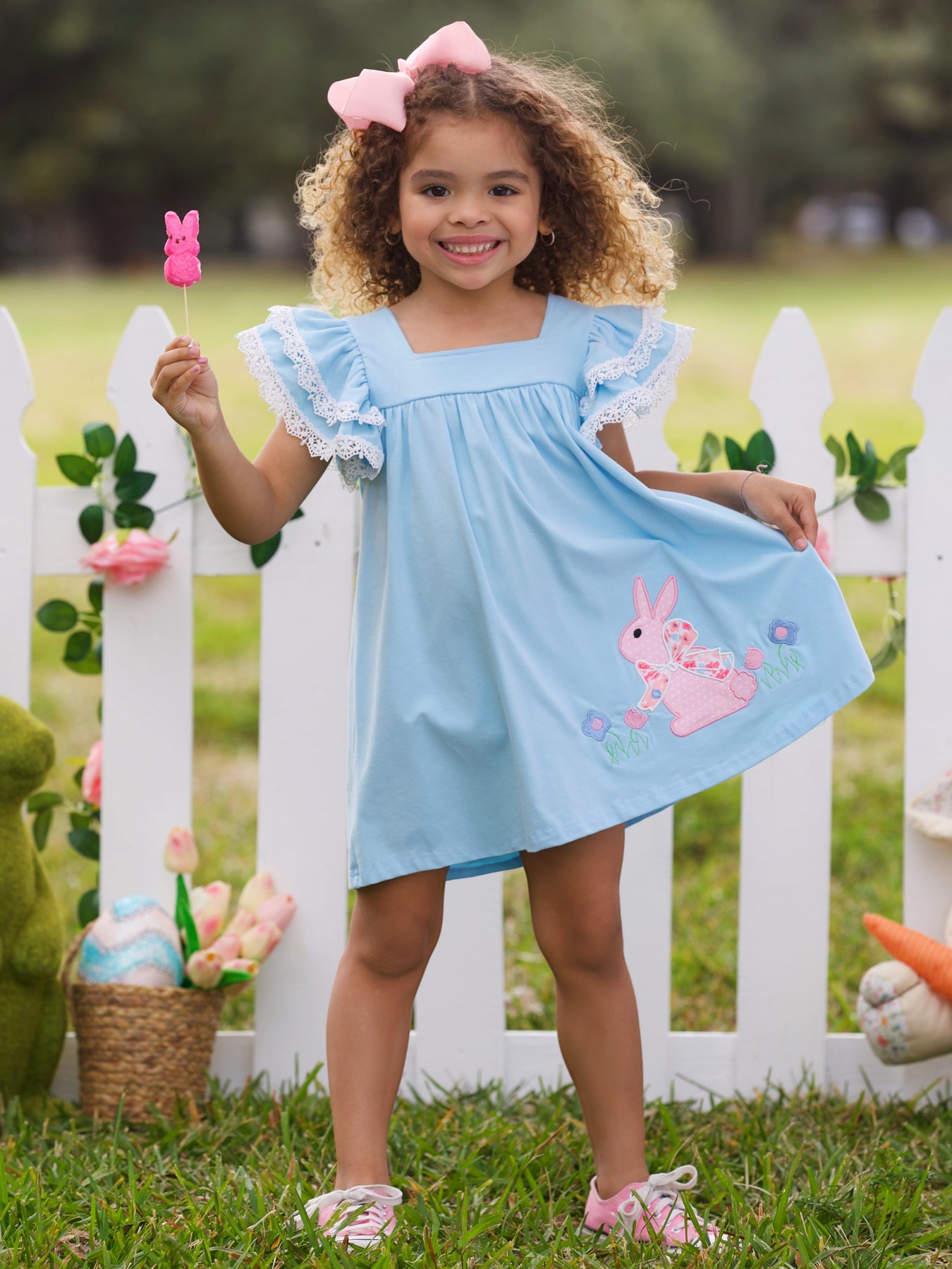 Celebrate the joy of spring with this adorable blue bunny dress, perfect for Easter celebrations, family gatherings, and sunny days!