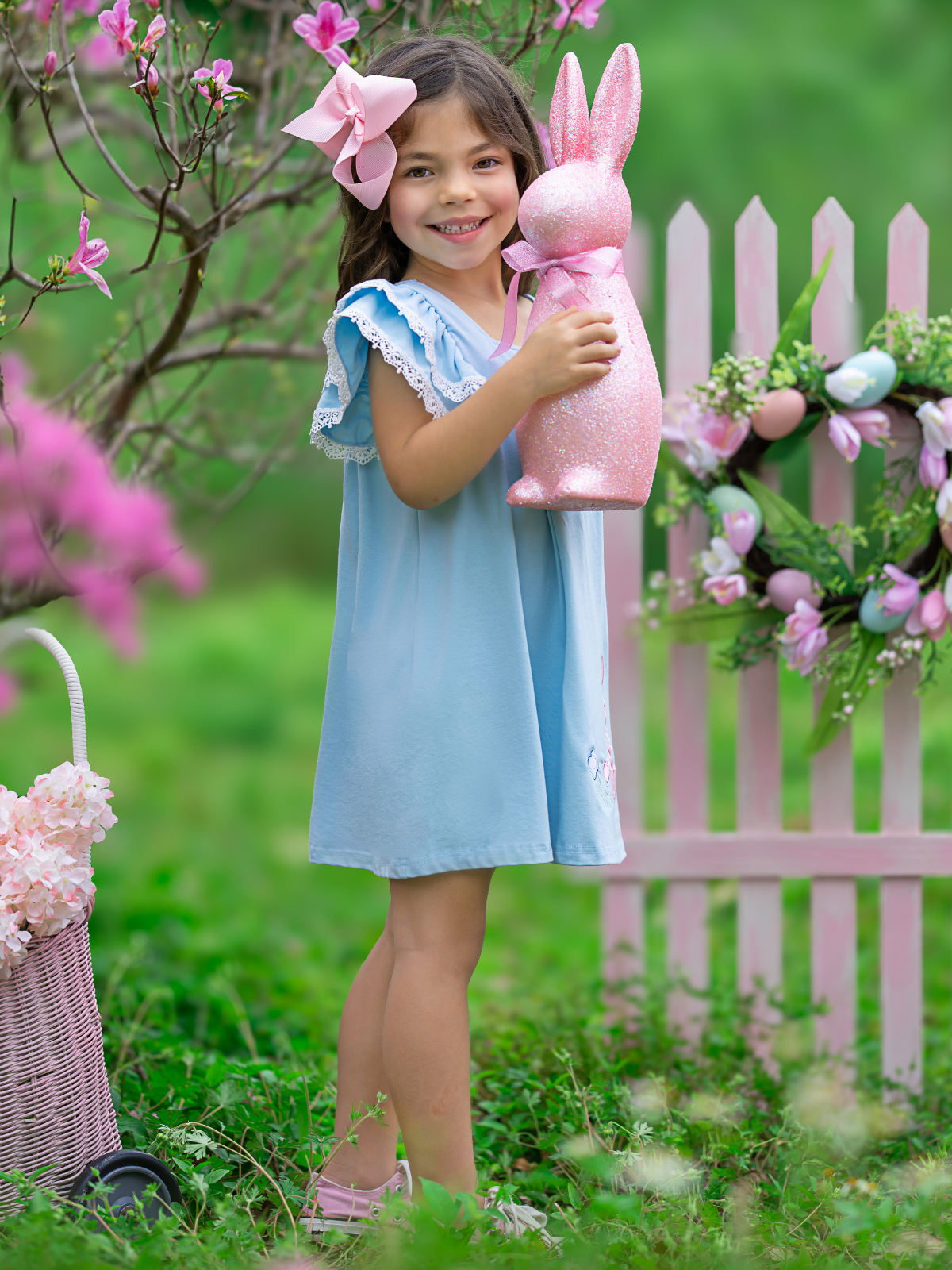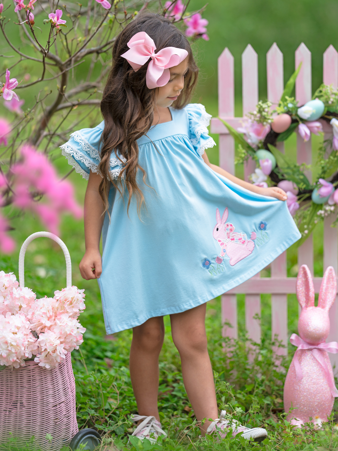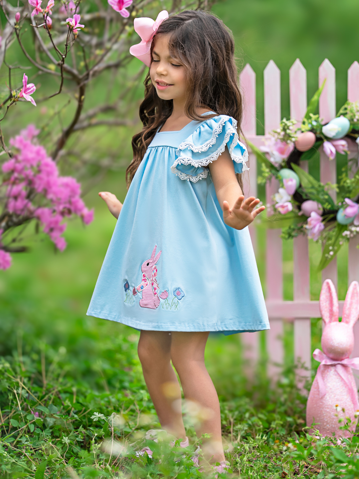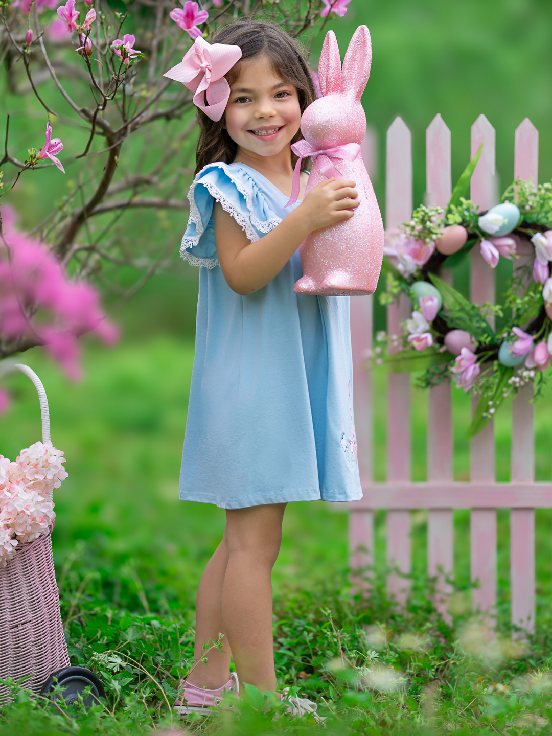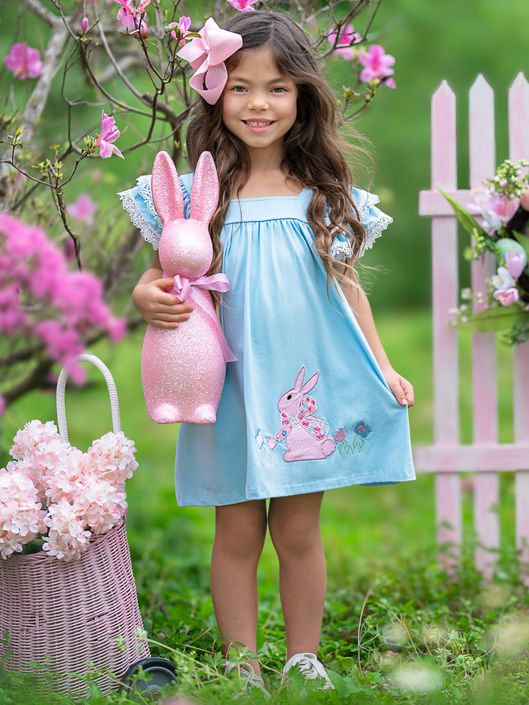 Celebrate the joy of spring with this adorable blue bunny dress, perfect for Easter celebrations, family gatherings, and sunny days!