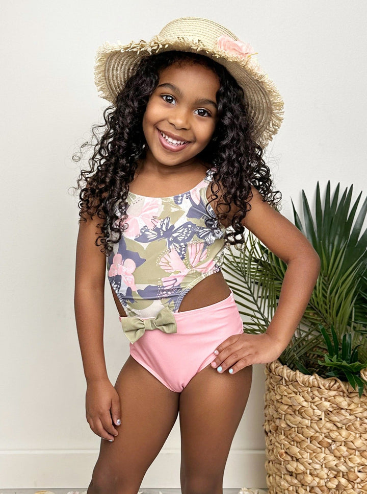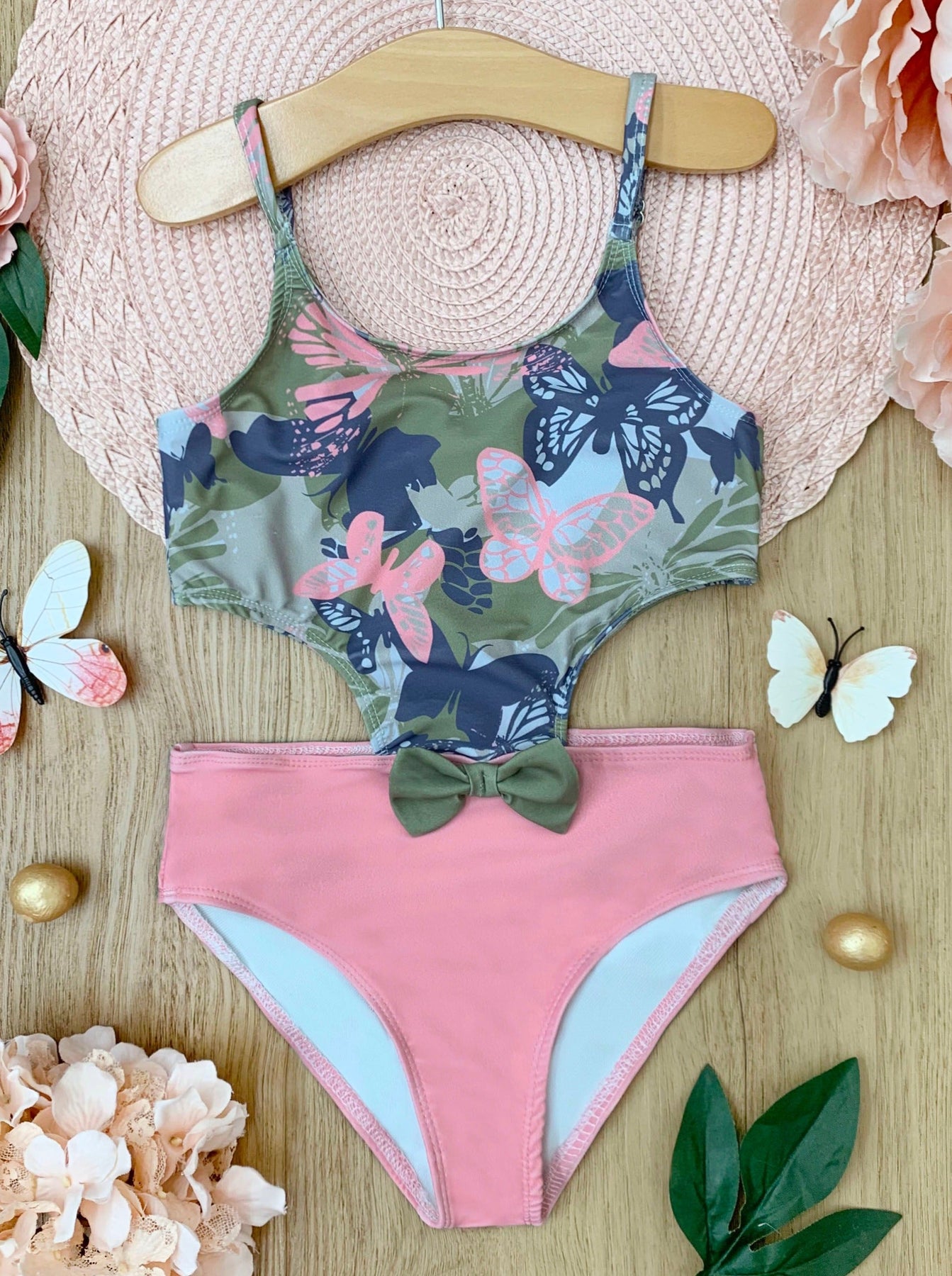 Girls Butterfly Cut Out One Piece Swimsuit | Mia Belle Girls Swimwear