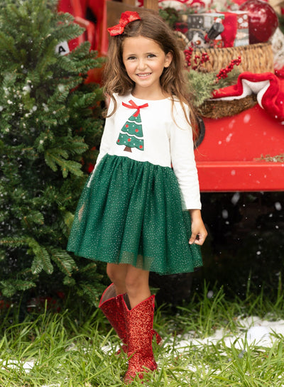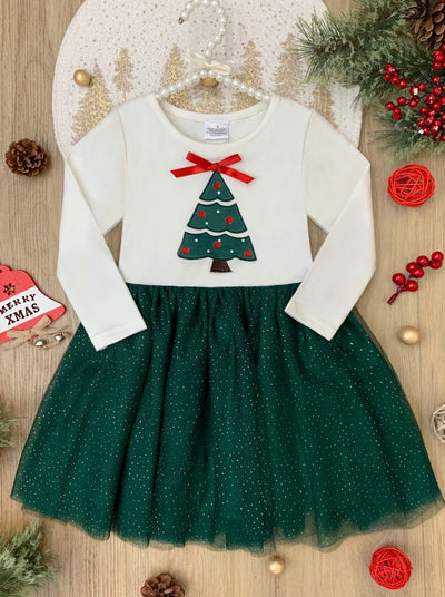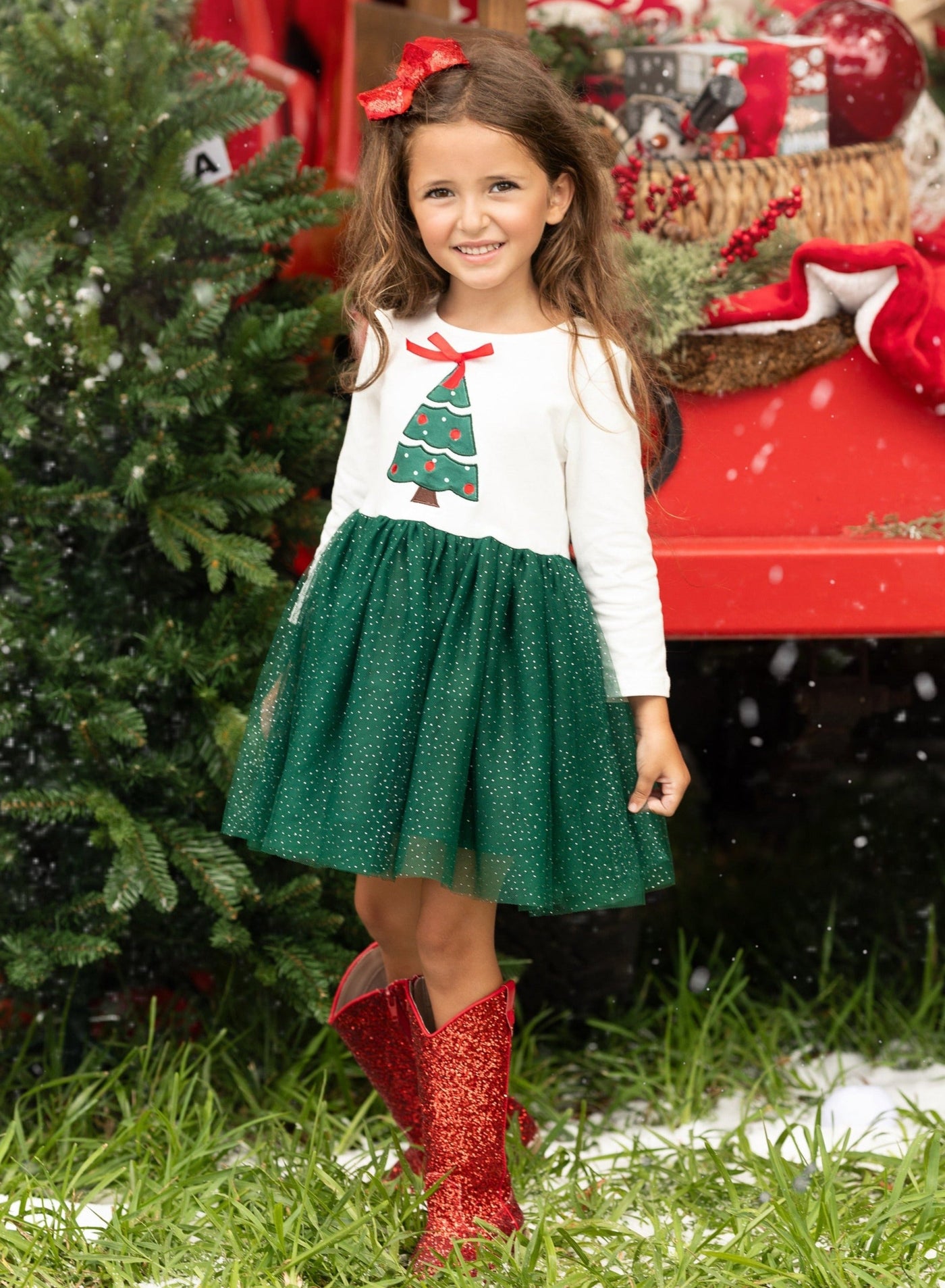 - Your little girl will be Santa's favorite in this adorable Christmas tree tutu dress! Featuring an extra sparkly tutu skirt and a tree-decorated long-sleeved top, this festive frock is a definite holiday must-have!