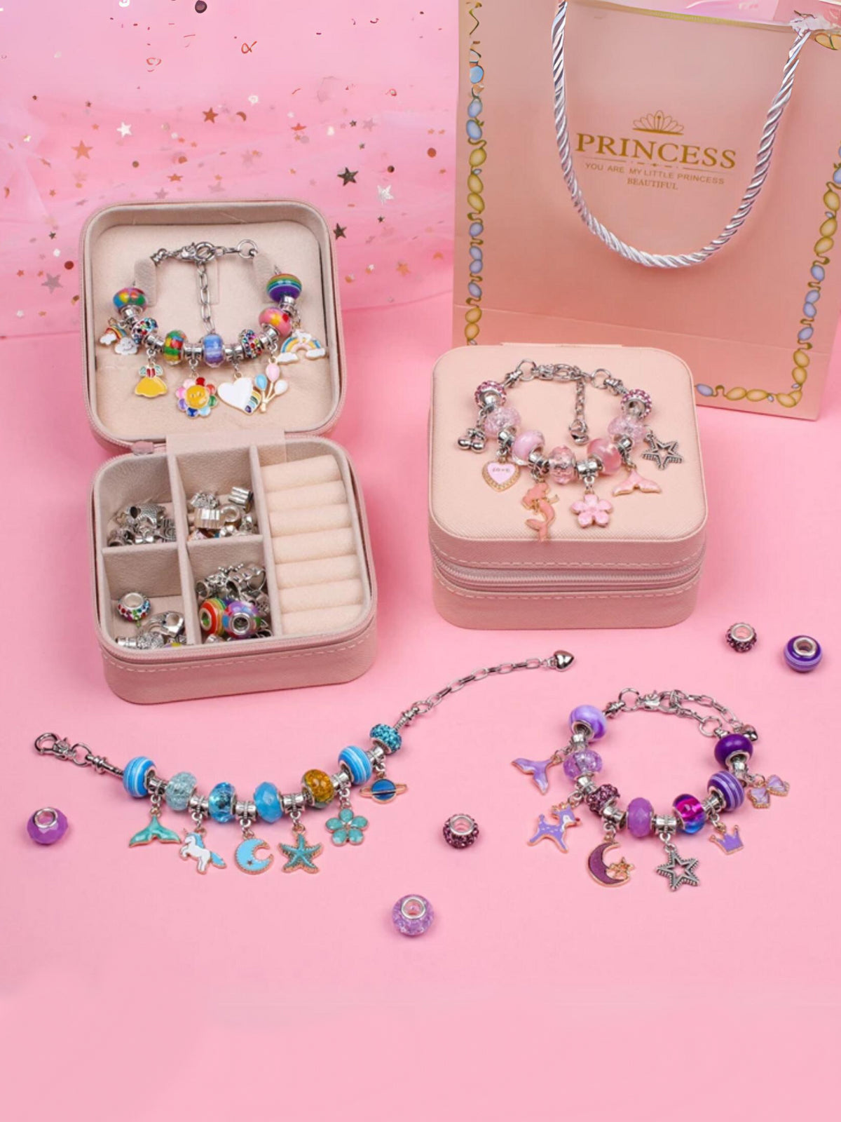 • Includes colorful beads, charms, and pendants such as hearts, stars, and mermaids for endless design possibilities.