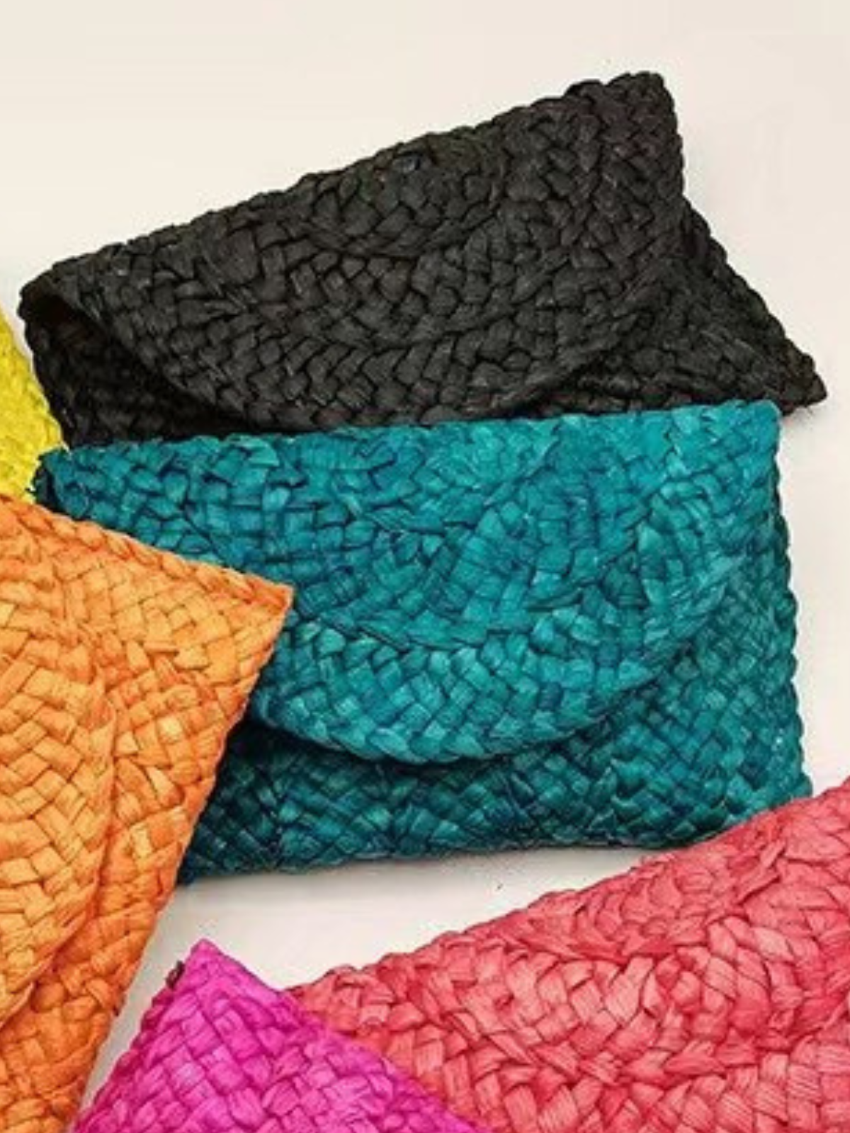 A little bit of F-U-N is just what her wardrobe needs! Sporting this season's hottest look, our small woven straw pouch will instantly brighten up any look. Your little fashionista will stand out in style with this summer must-have!