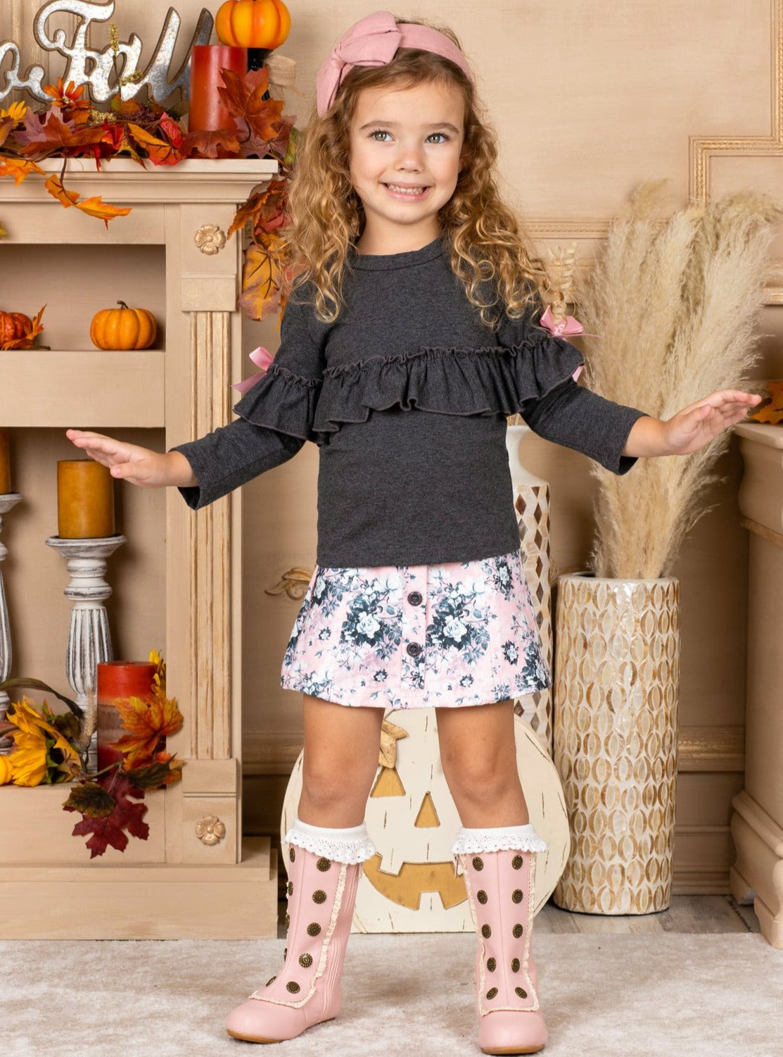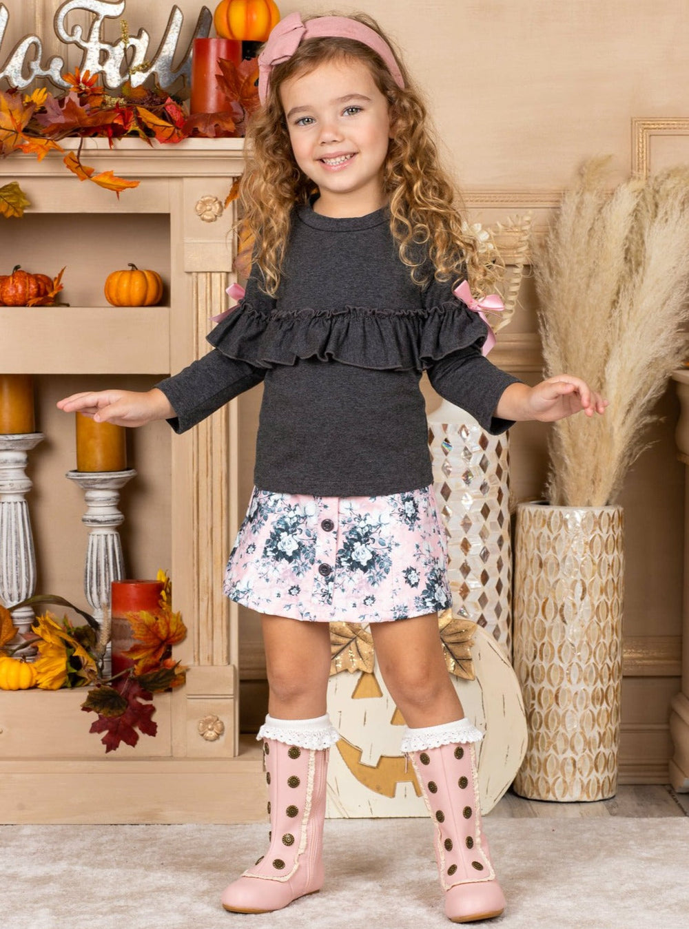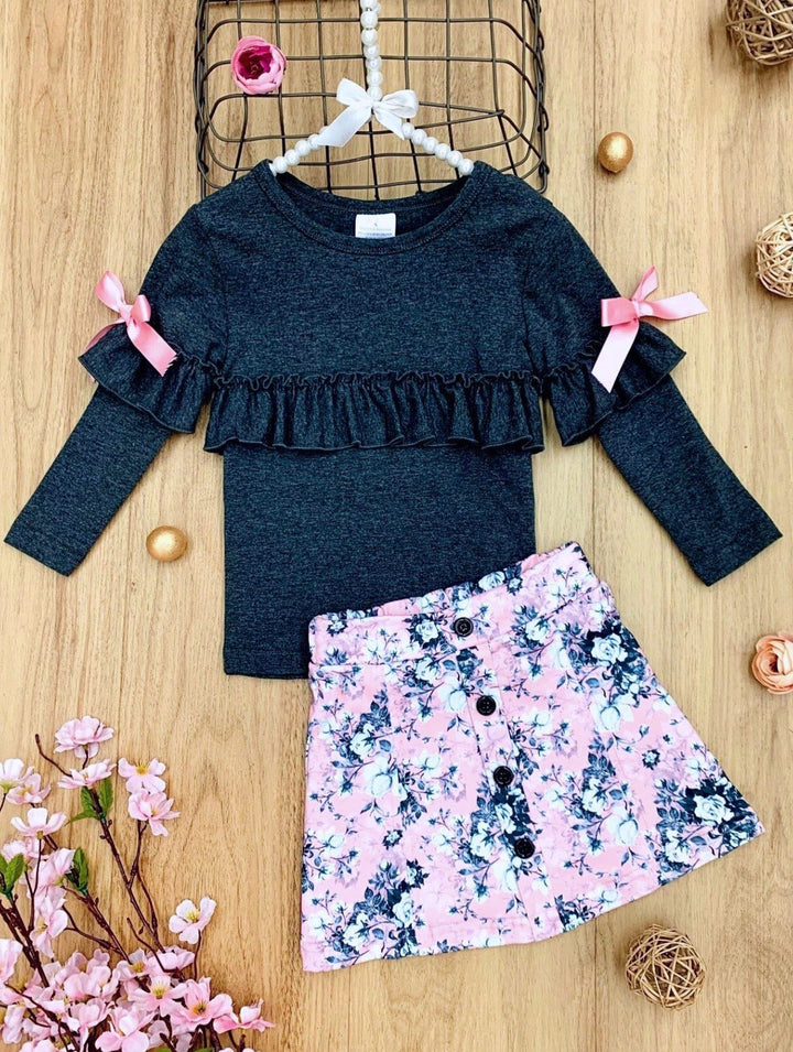 - Enjoy our comfy long sleeve top and cute floral skirt that make it easy for your little girl to look like a diva but play like a kid in comfort and style.
