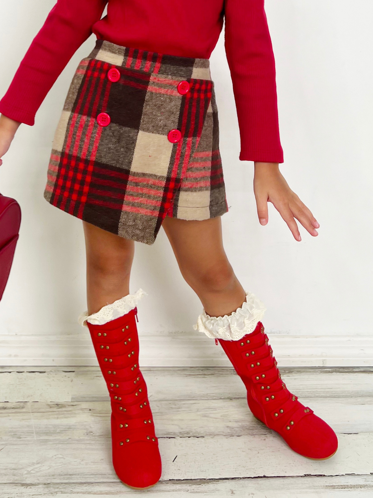 Girls Military Style Studded Boots By Liv and Mia - red