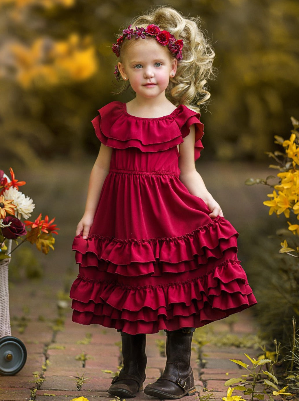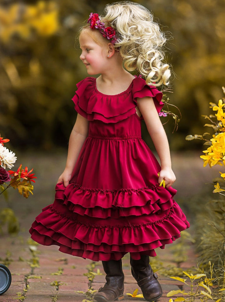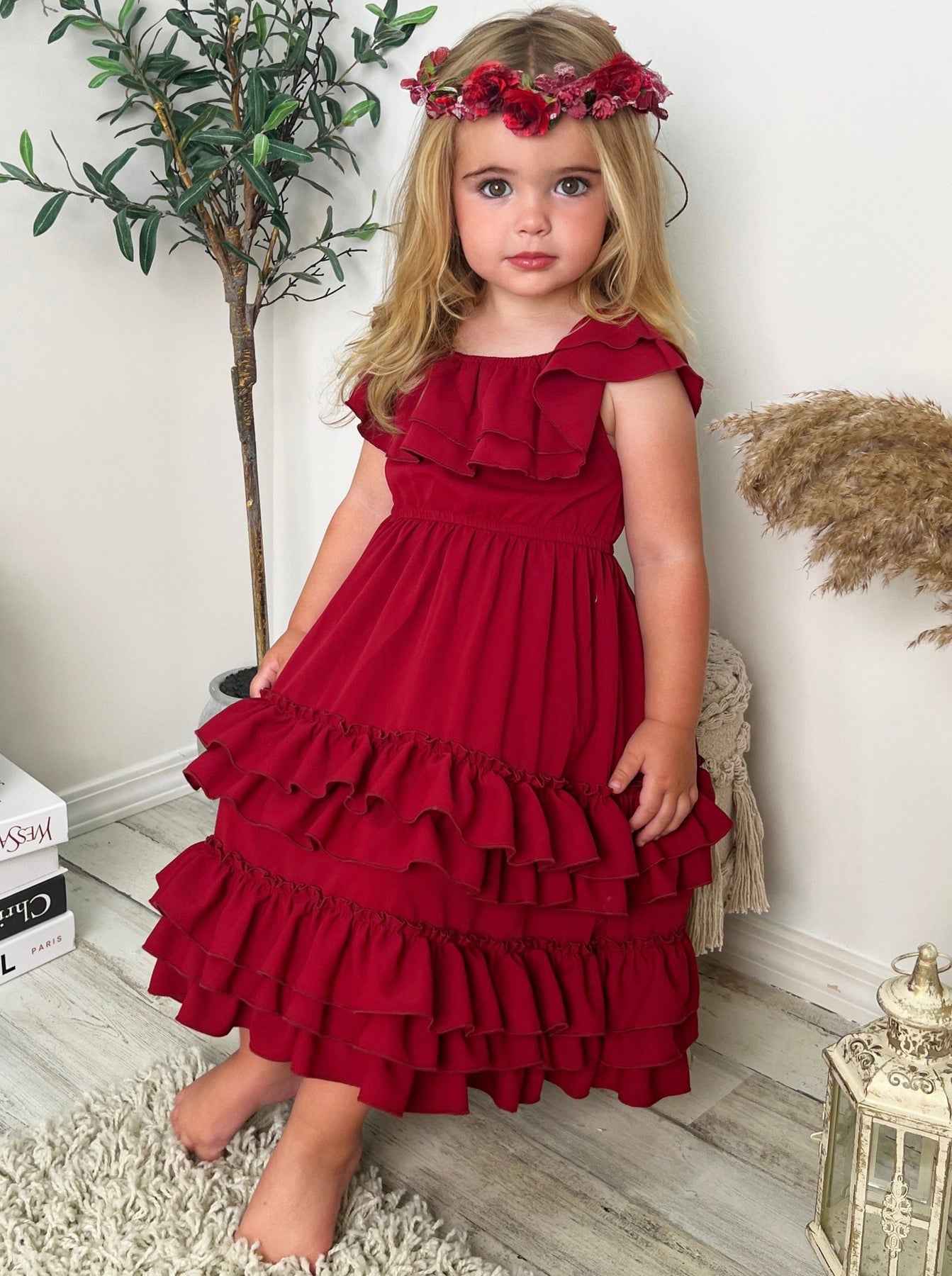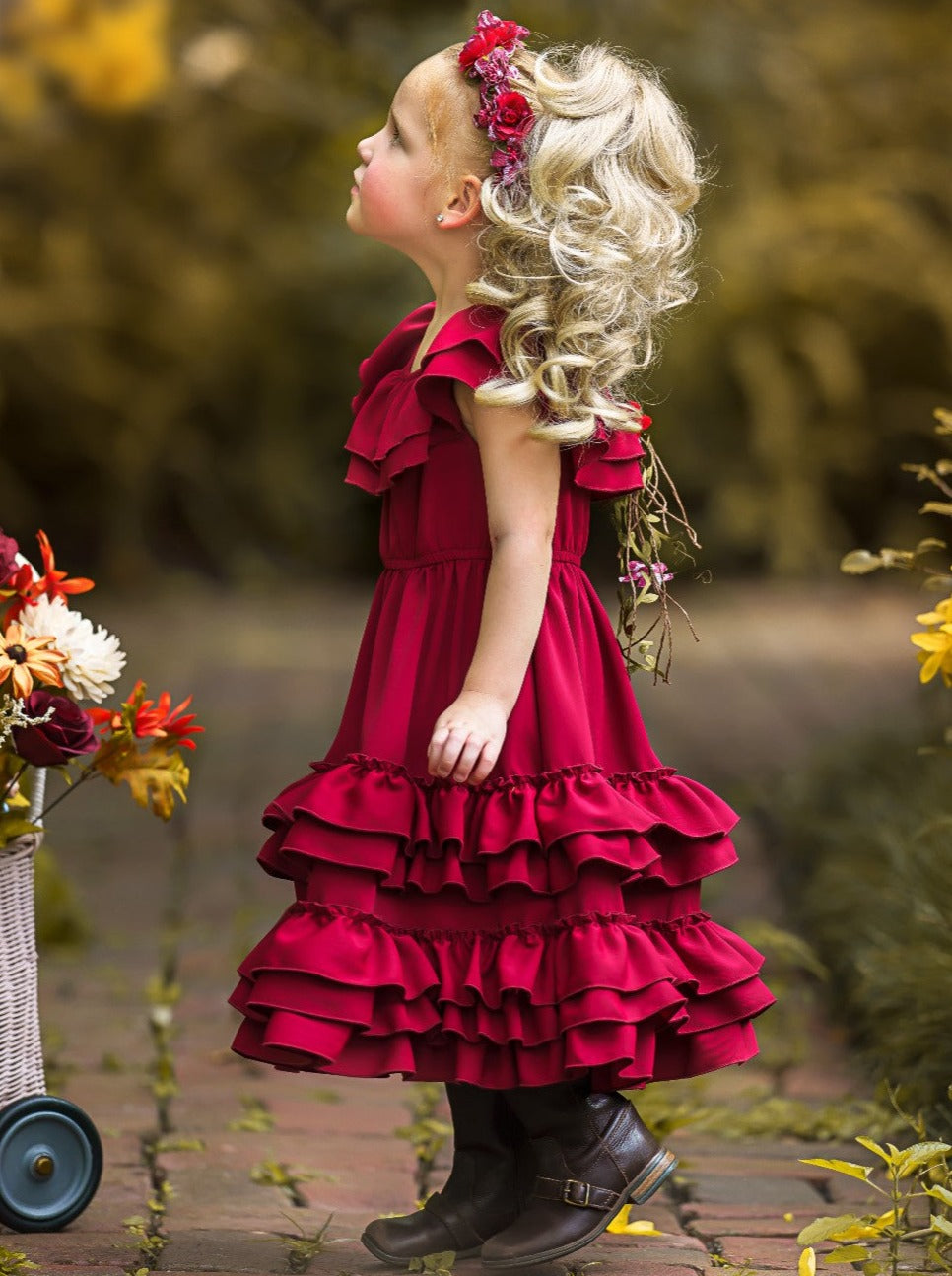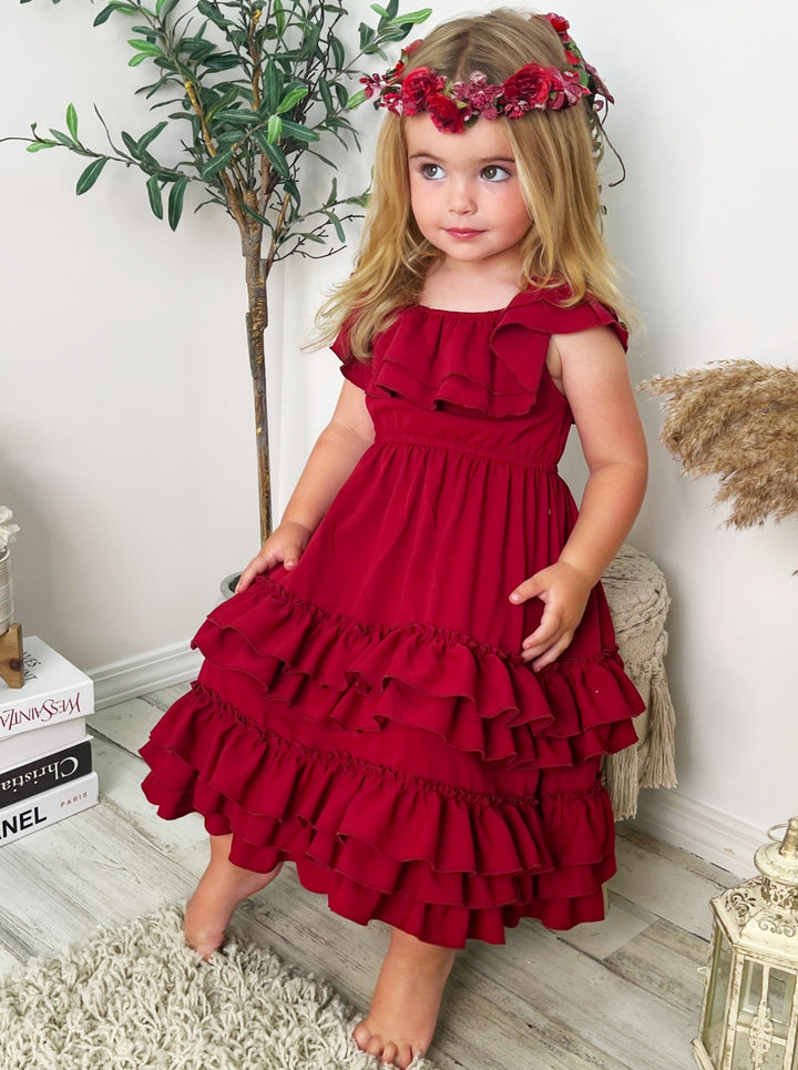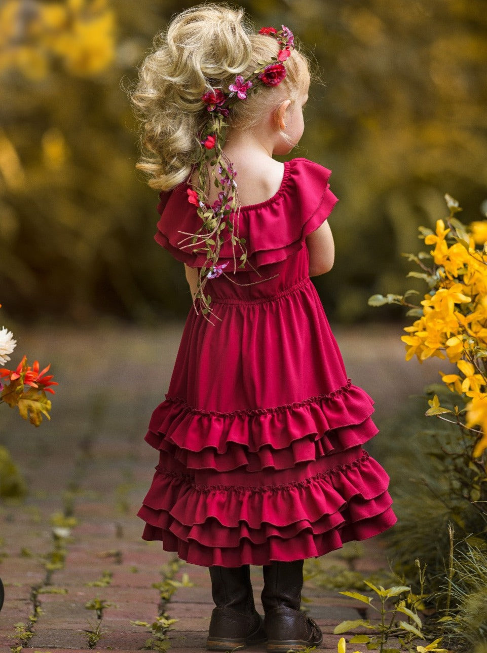 There's so much to love about our tiered ruffle midi dress for girls. Eye-catching color and endless ruffles will make twirling the day way that much more fun!