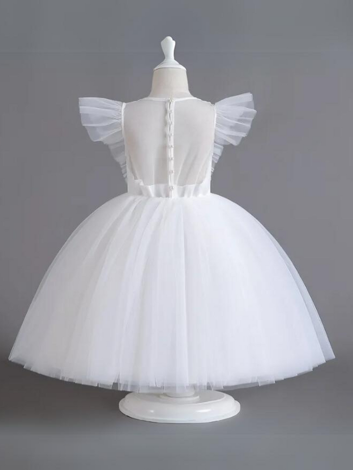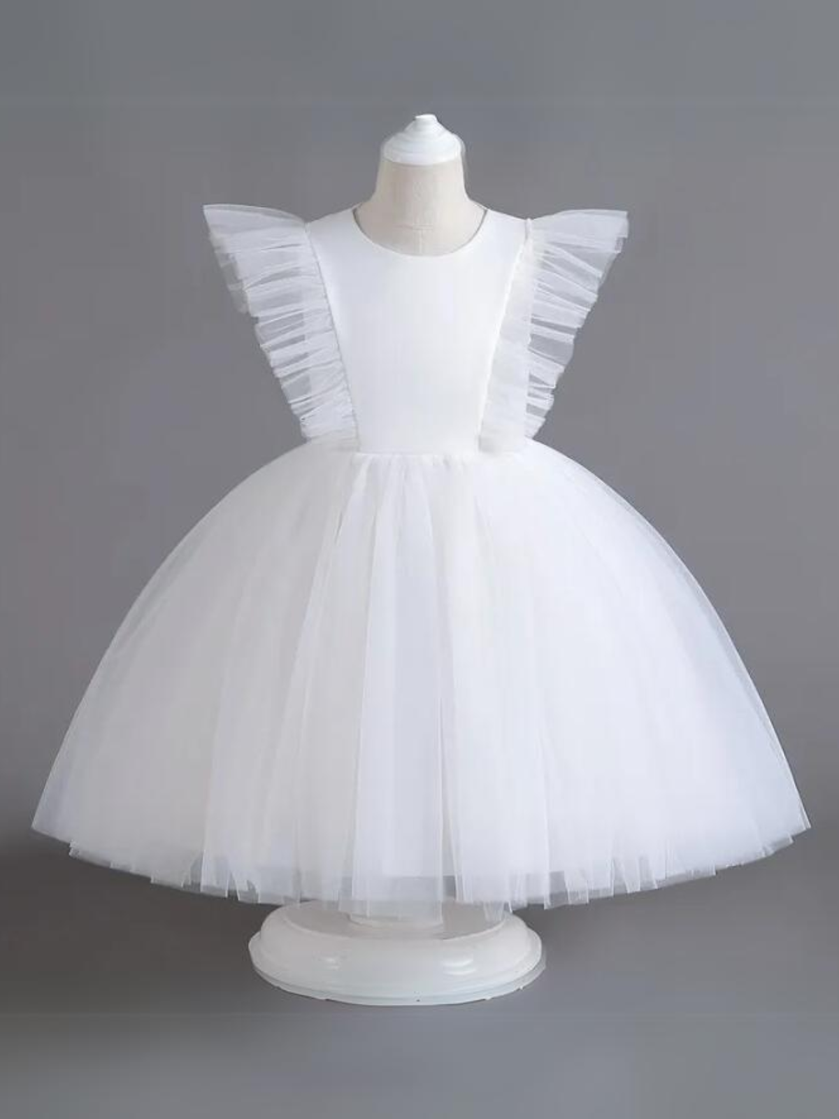 - For a special day as pure as her heart, this flutter sleeve tulle dress is the perfect choice. Watch your baby girl turn into an angelic little lady when she dons this lovely frock. Its twirl-worthy silhouette, mesh back, and tulle details make a dreamy finish for picture-perfect moments. Ready the cameras!