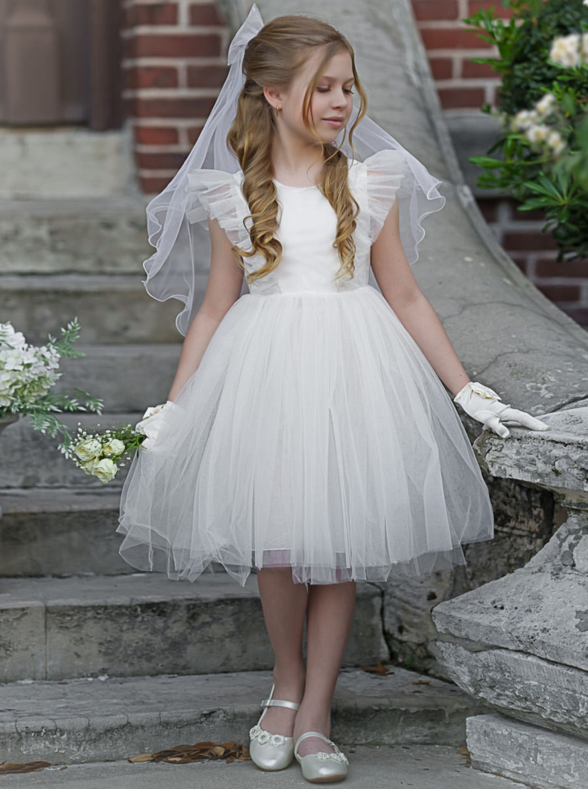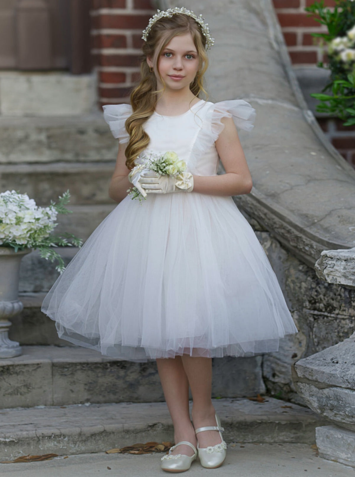 Dainty Daydream Flutter Sleeve Tulle Communion Dress