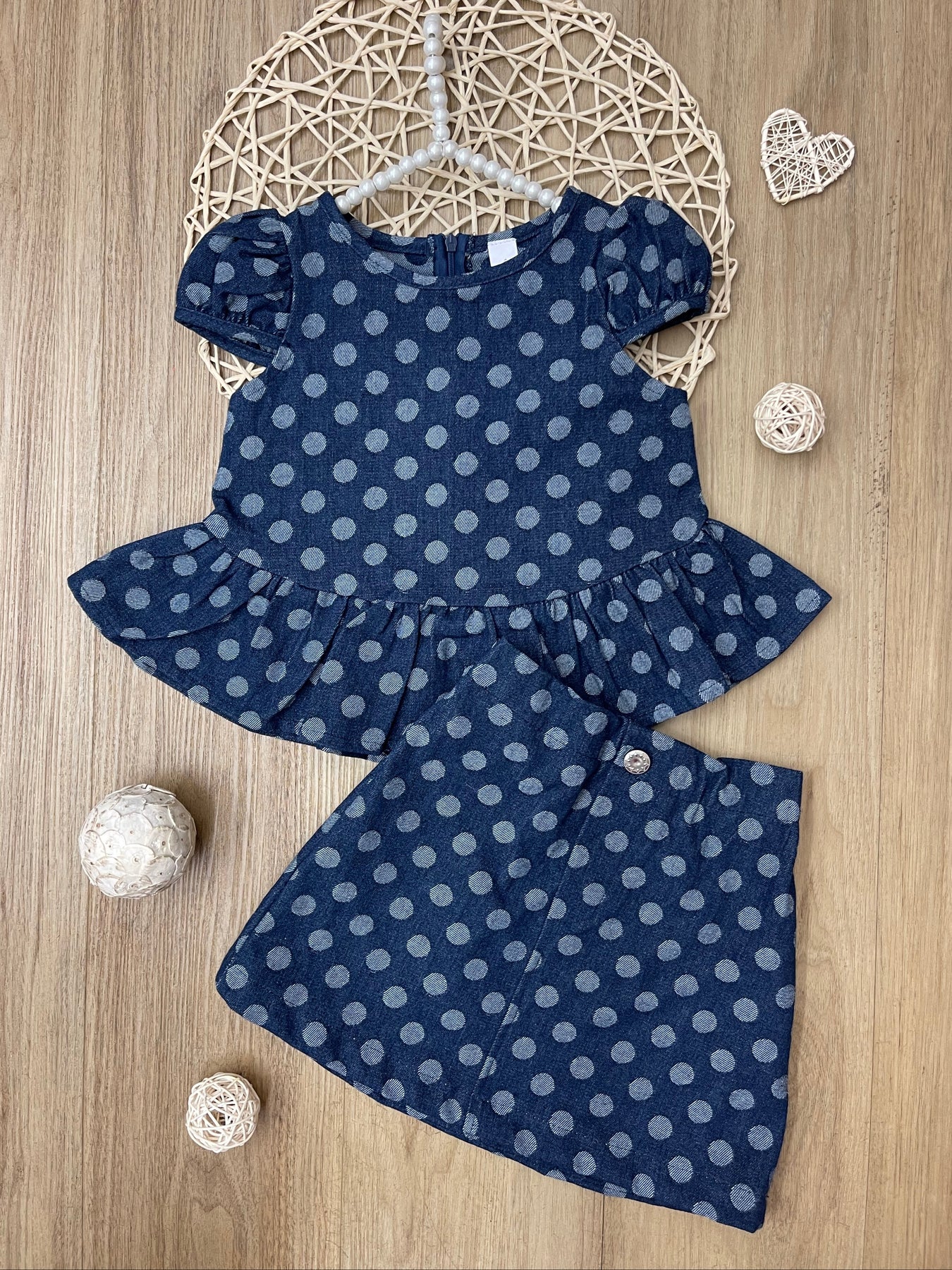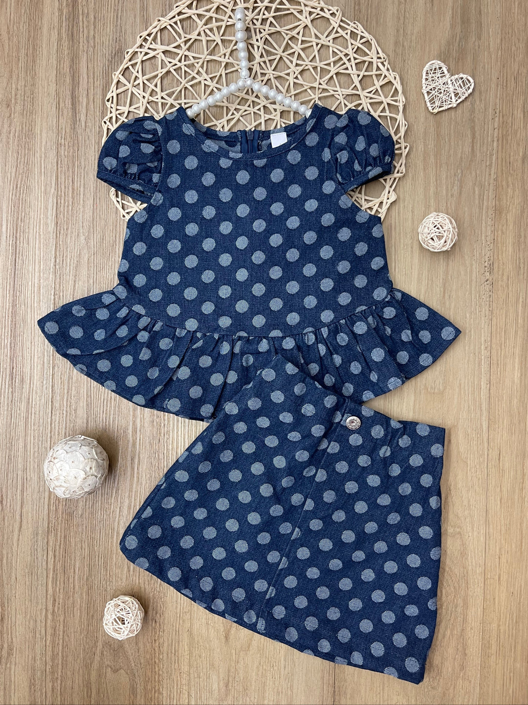 Sweet, stylish, and full of charm — this denim polka dot set is a must-have for your little trendsetter’s seasonal wardrobe.