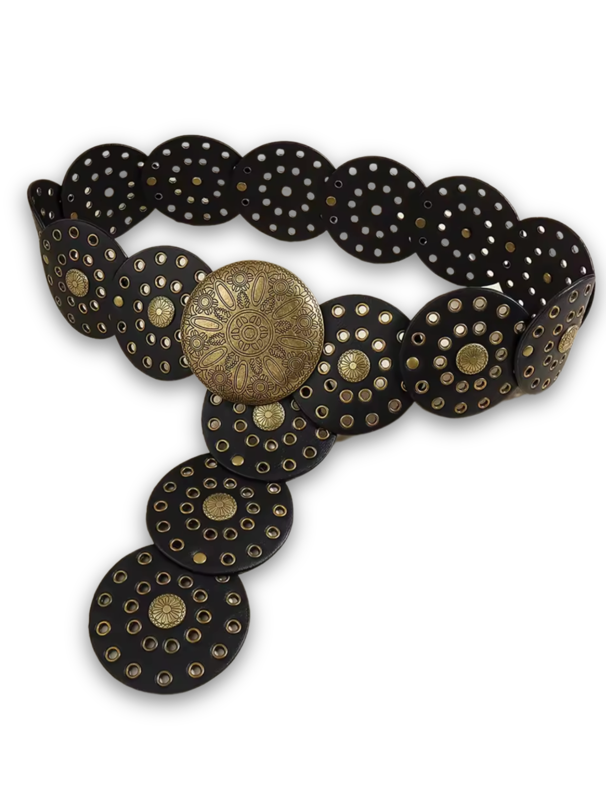 - Add a touch of bold western glam to her look with this unique circle-cut belt—perfect for girls who love to stand out in style!