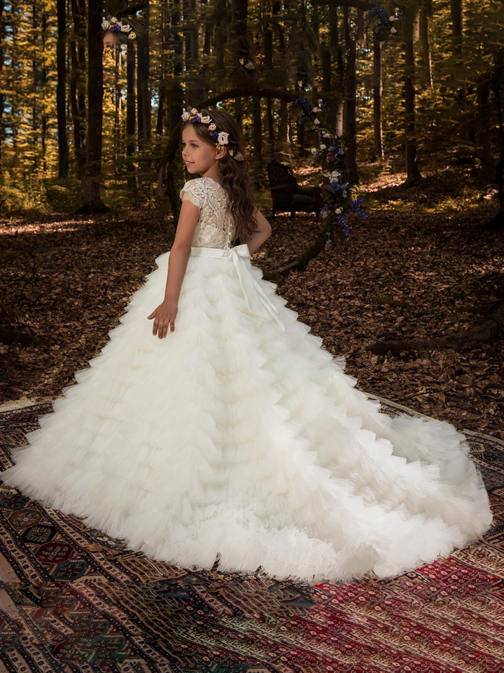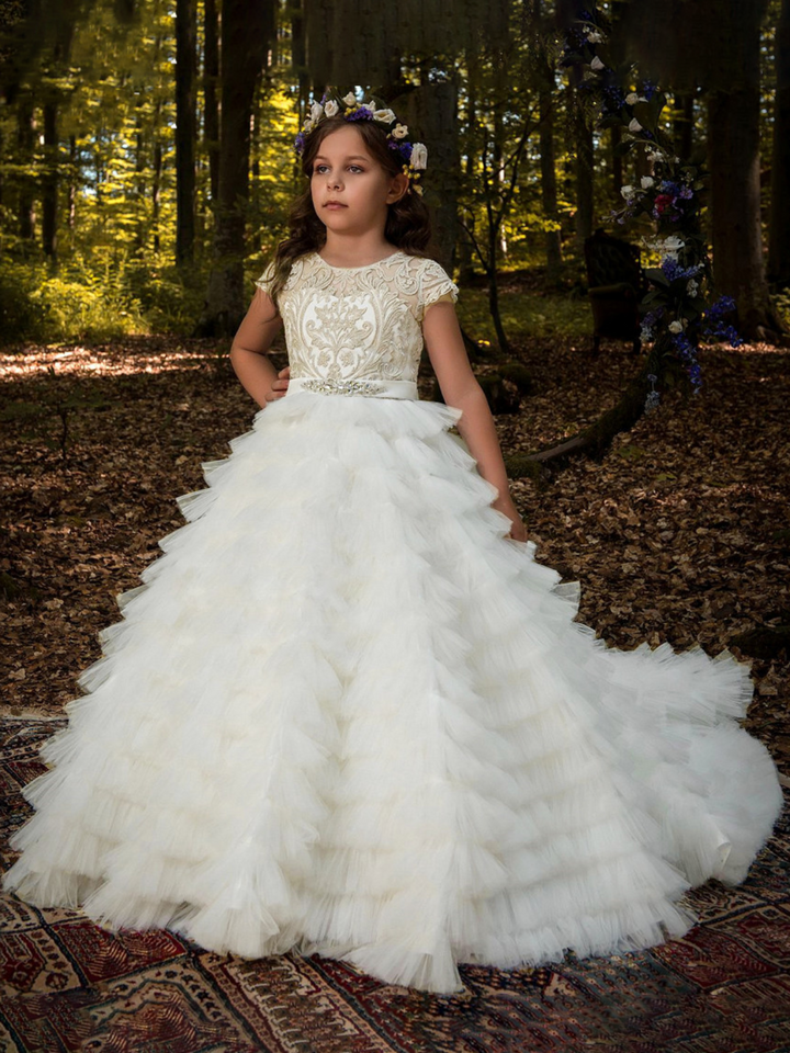 Dreamlike Elegance Belted Bouffant Communion Gown