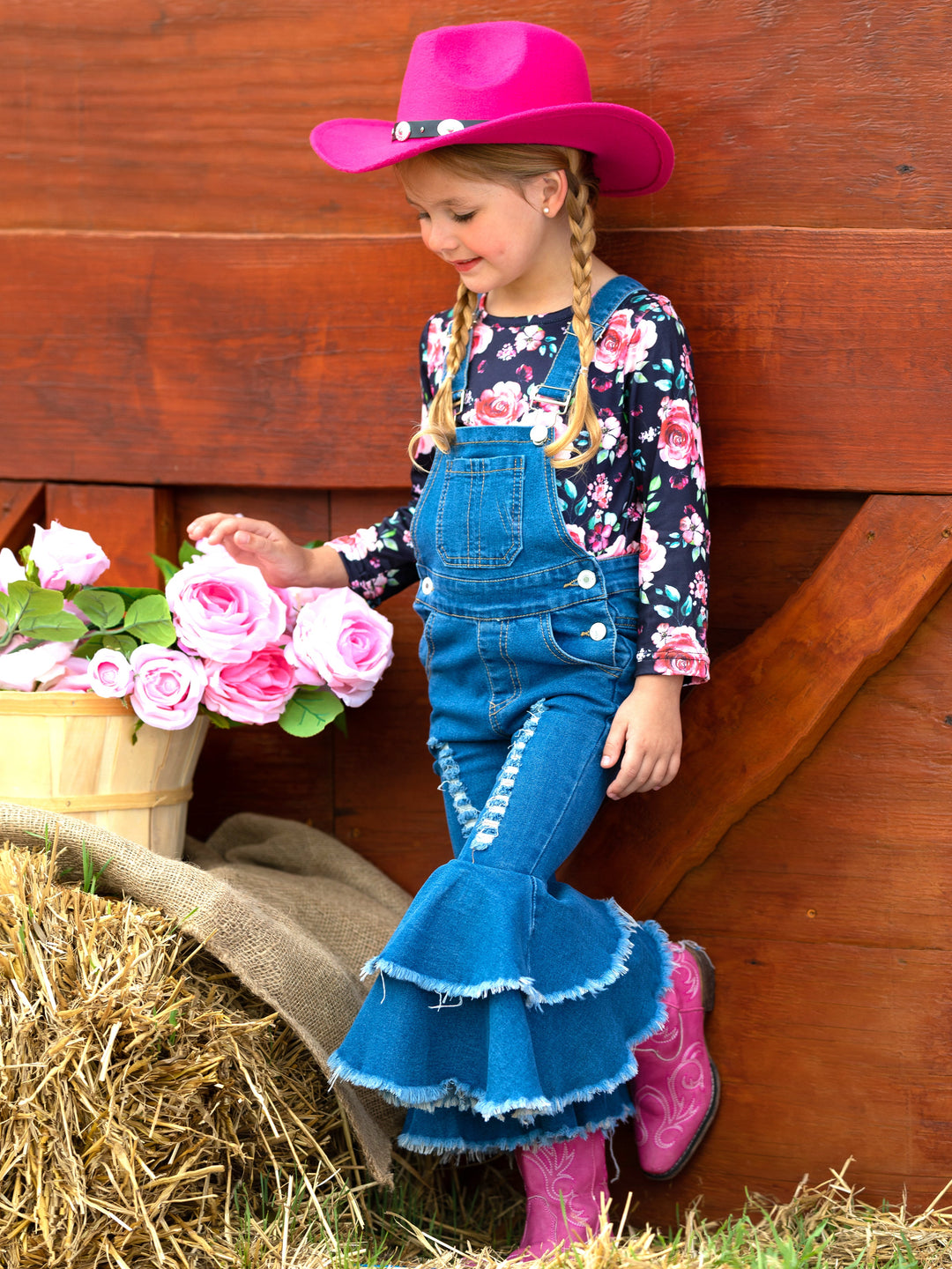 Little Girls Fall Outfits | Flared Denim Overall Set | Girls Boutique