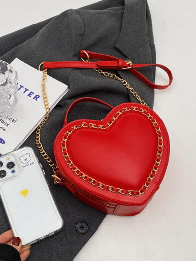 Heart-shaped handbag with crossbody chain strap and tote handle