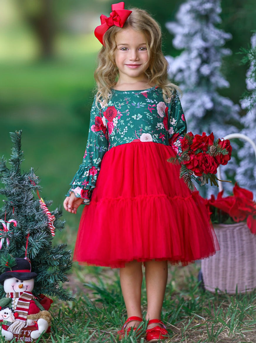 • Rose blossoms are such a vibe for winter! Keep things light and cheery with our floral holiday tutu dress for girls. Can you think of anything cuter?