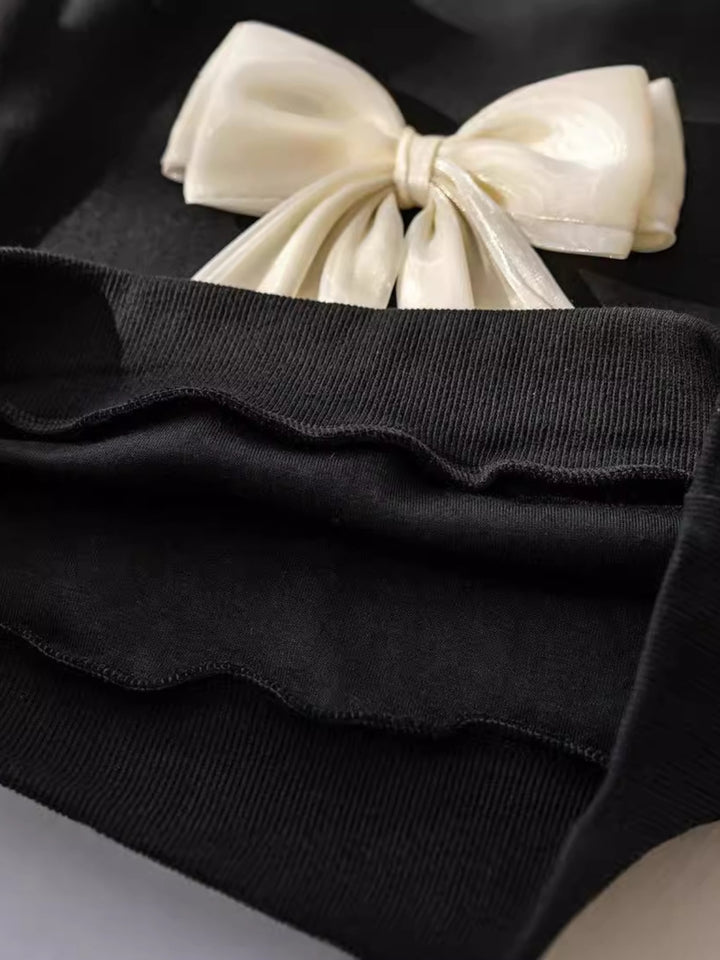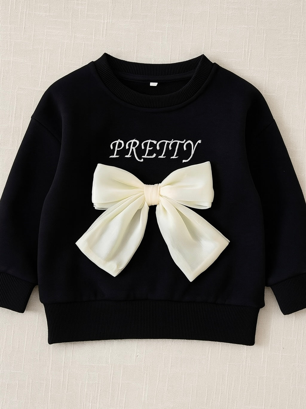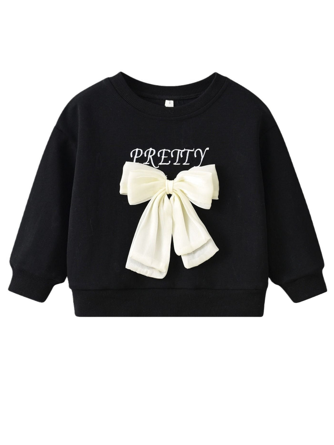 A must-have for little fashionistas, this black sweater with an oversized ivory bow and embroidered "PRETTY" text brings sweet sophistication to everyday style.