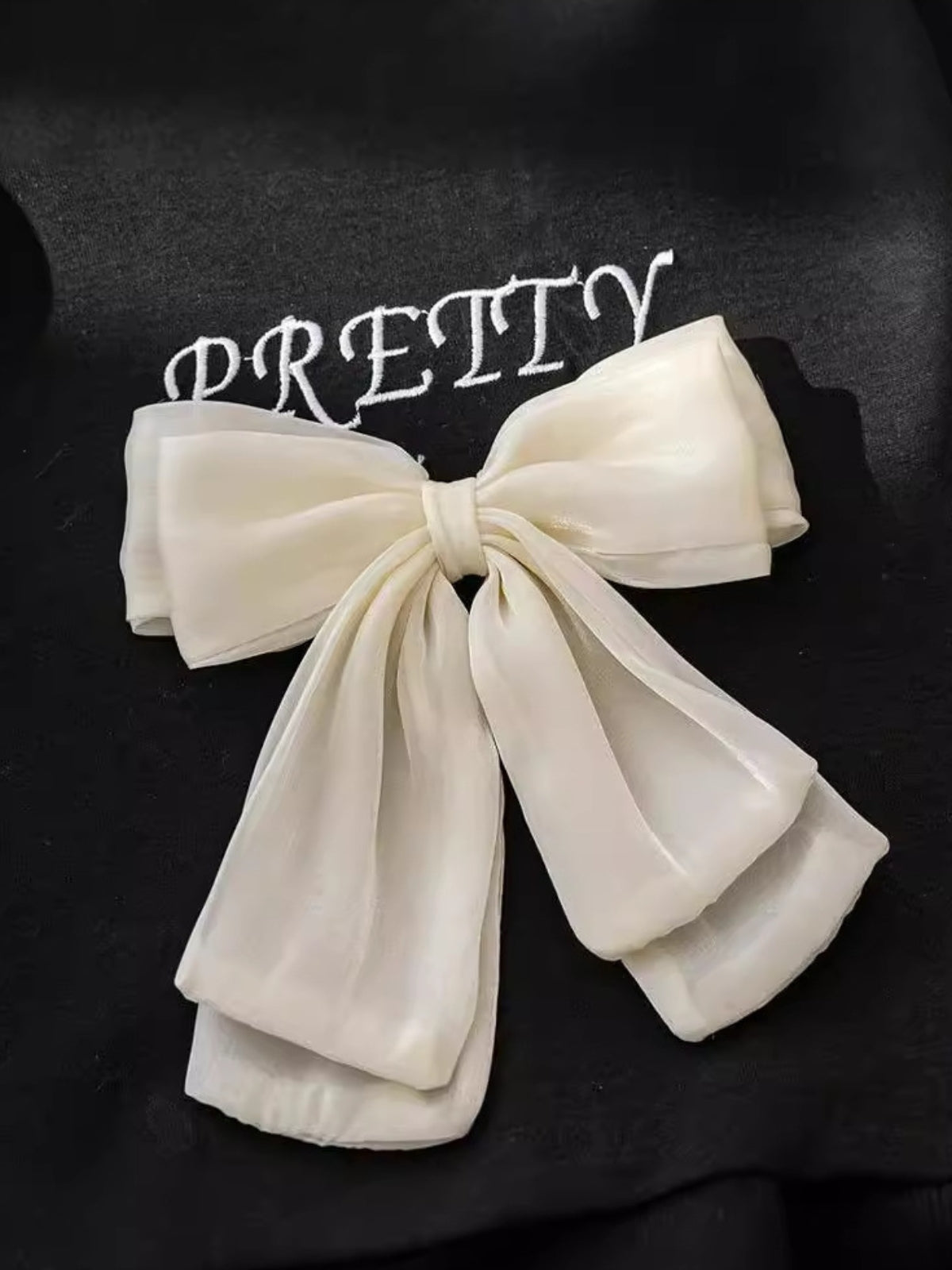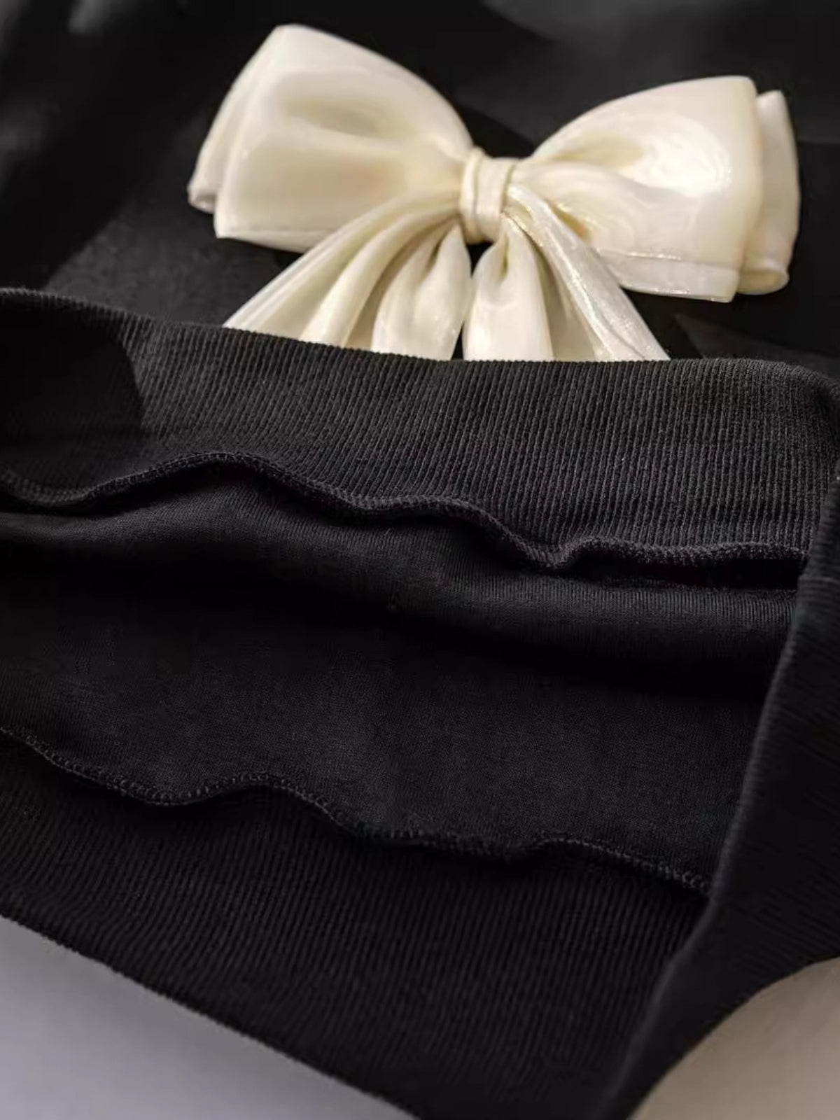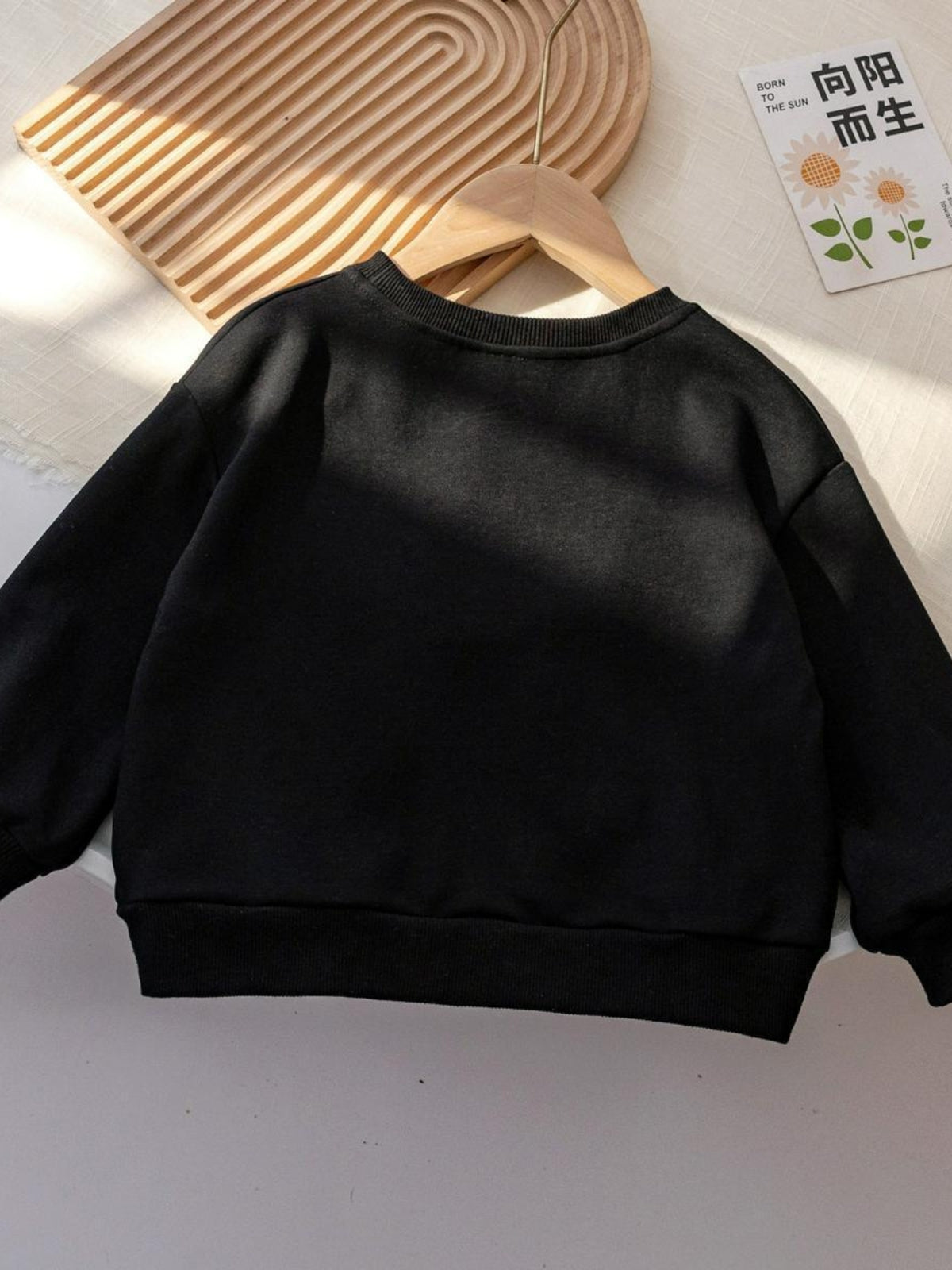 A must-have for little fashionistas, this black sweater with an oversized ivory bow and embroidered "PRETTY" text brings sweet sophistication to everyday style.
