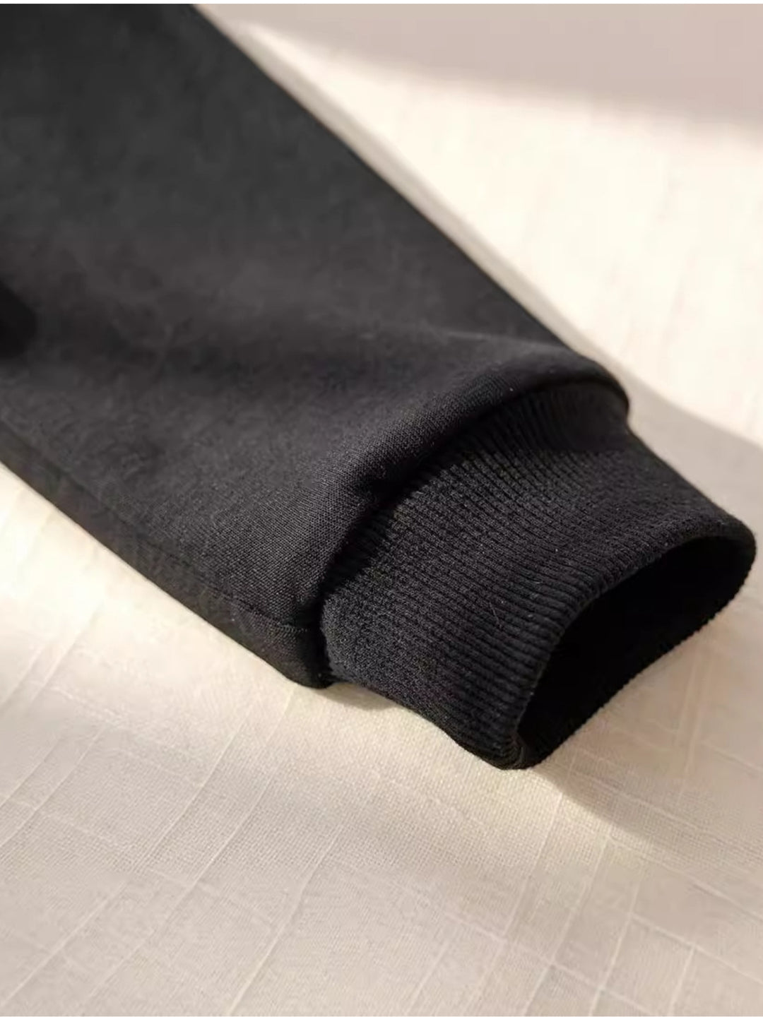 - Ribbed cuffs and hem provide a snug, stay-in-place fit