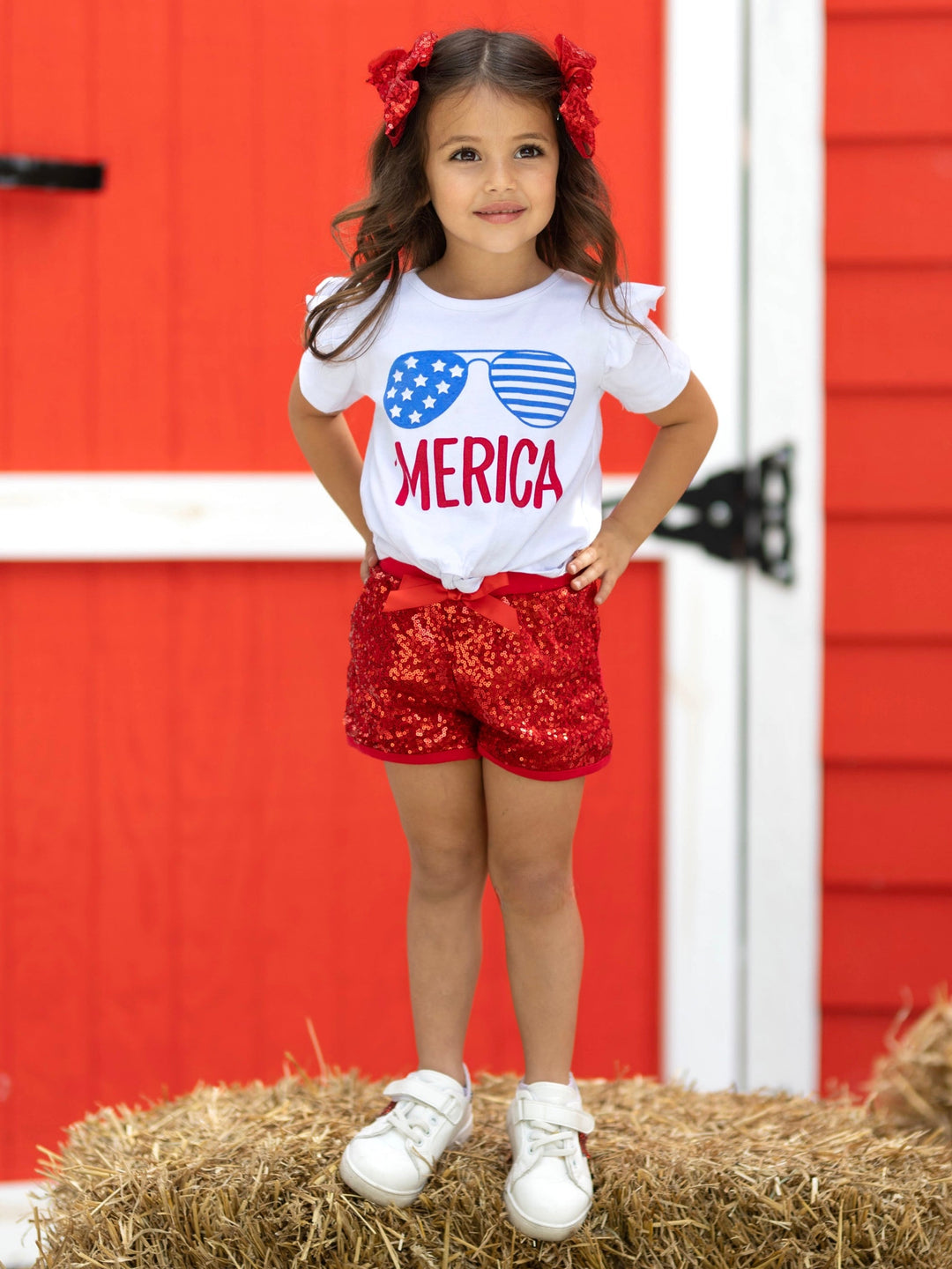 - Time to sparkle and shine like the 4th of July in this cute and casual knot hem top and sequin shorts set. Made for patriotic princesses, this special pairing is guaranteed to make your celebrations extra dazzling. #Merica