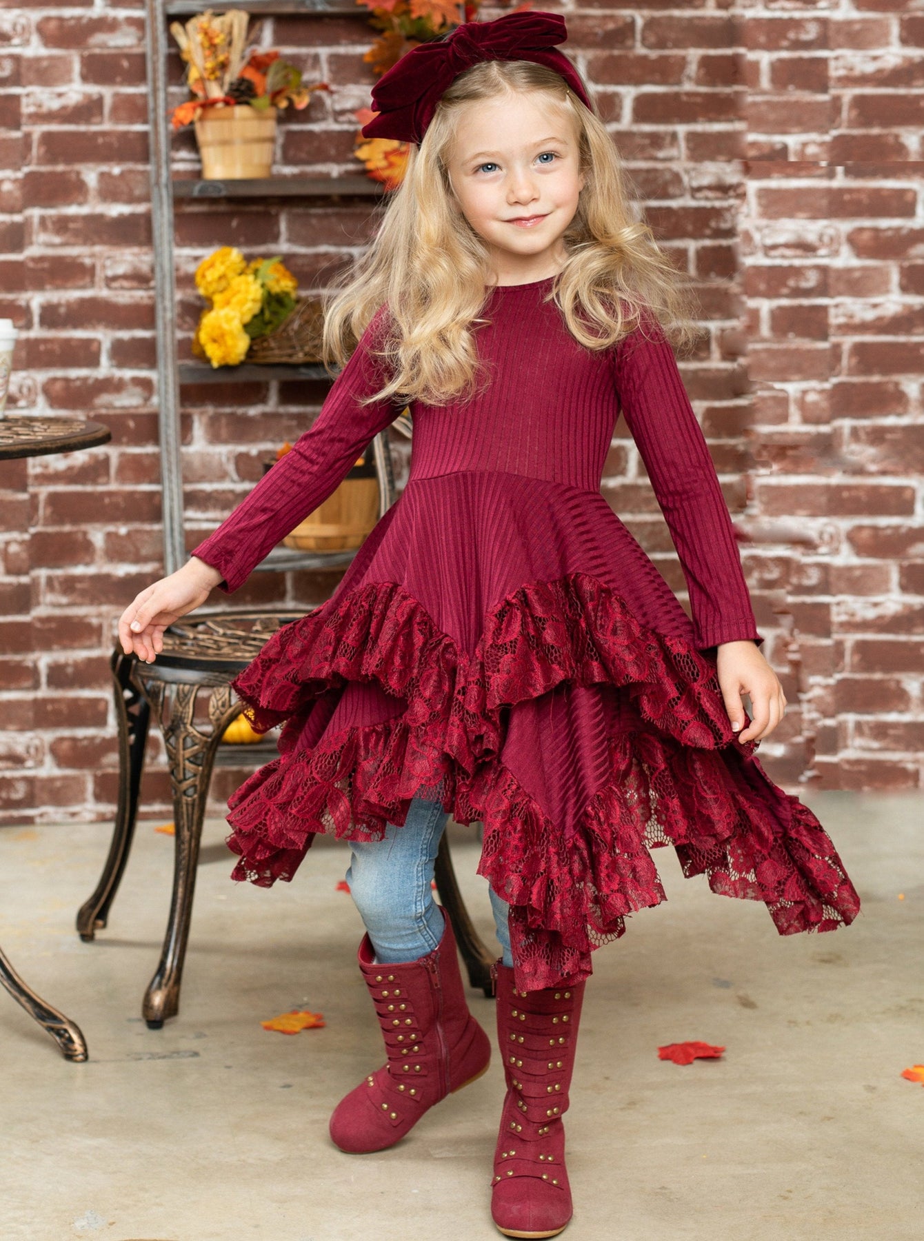 - Your little girl will love our lace hem tunic style dress. What's better than lace and ruffles? Layers of them!