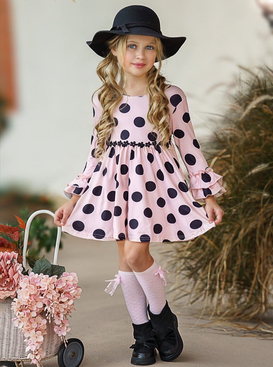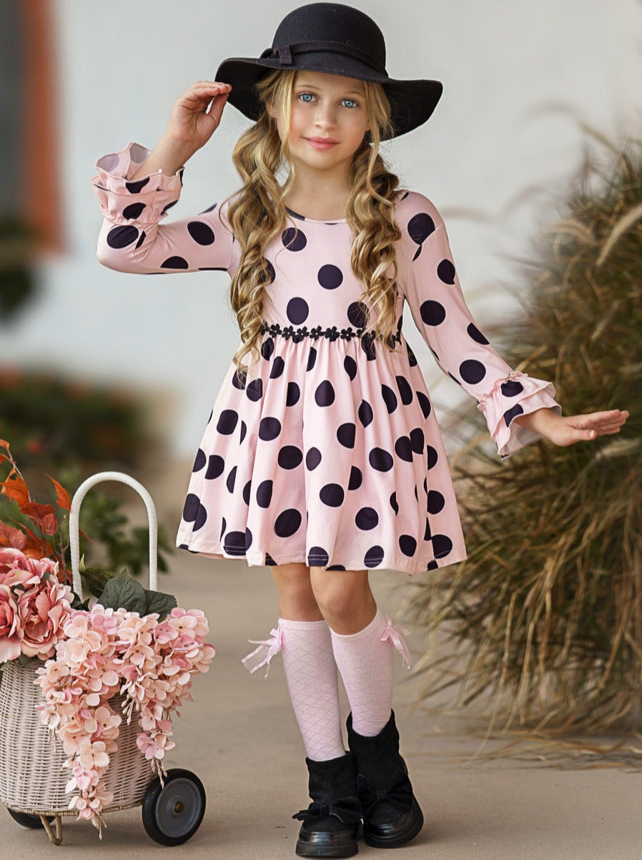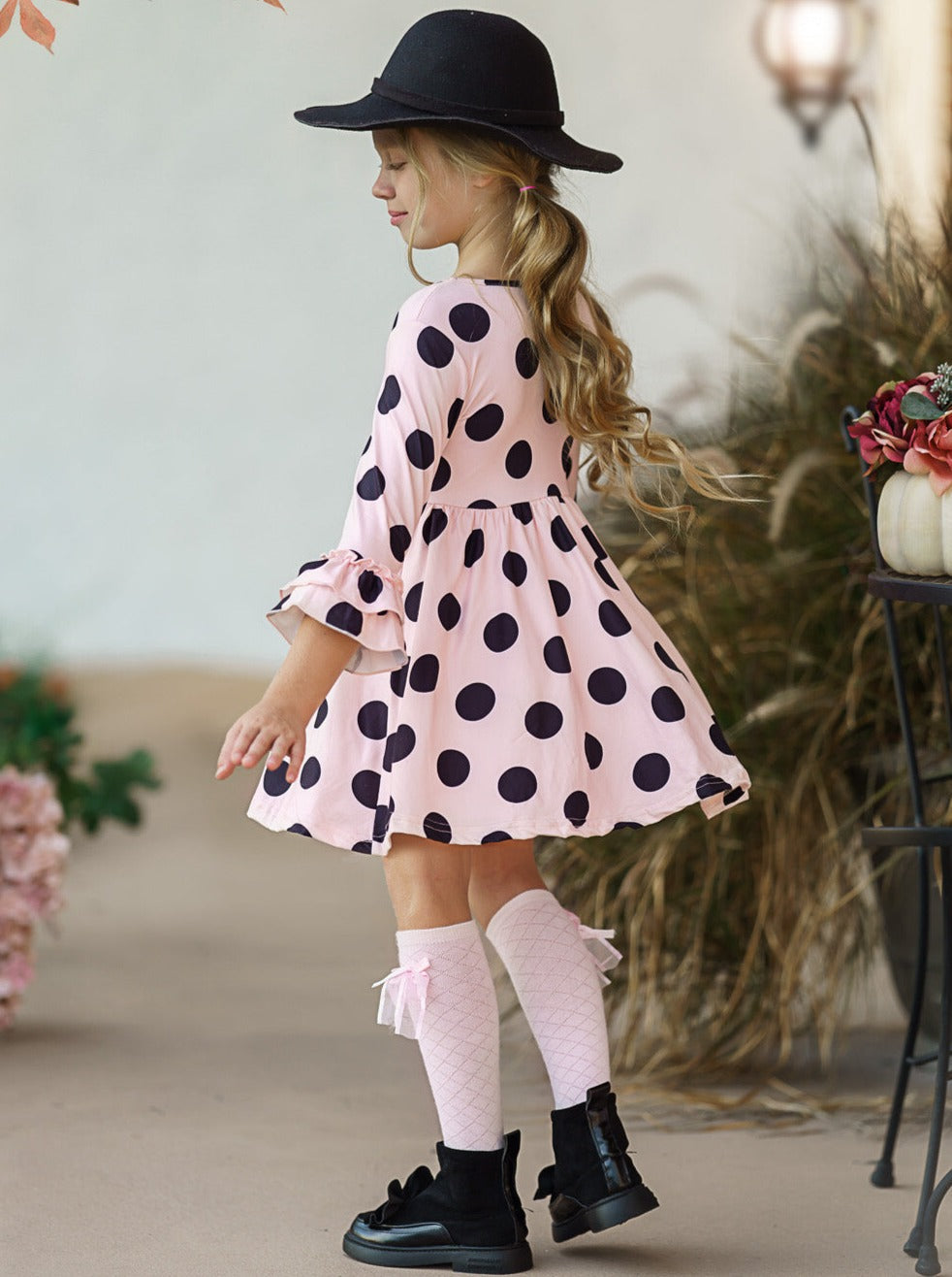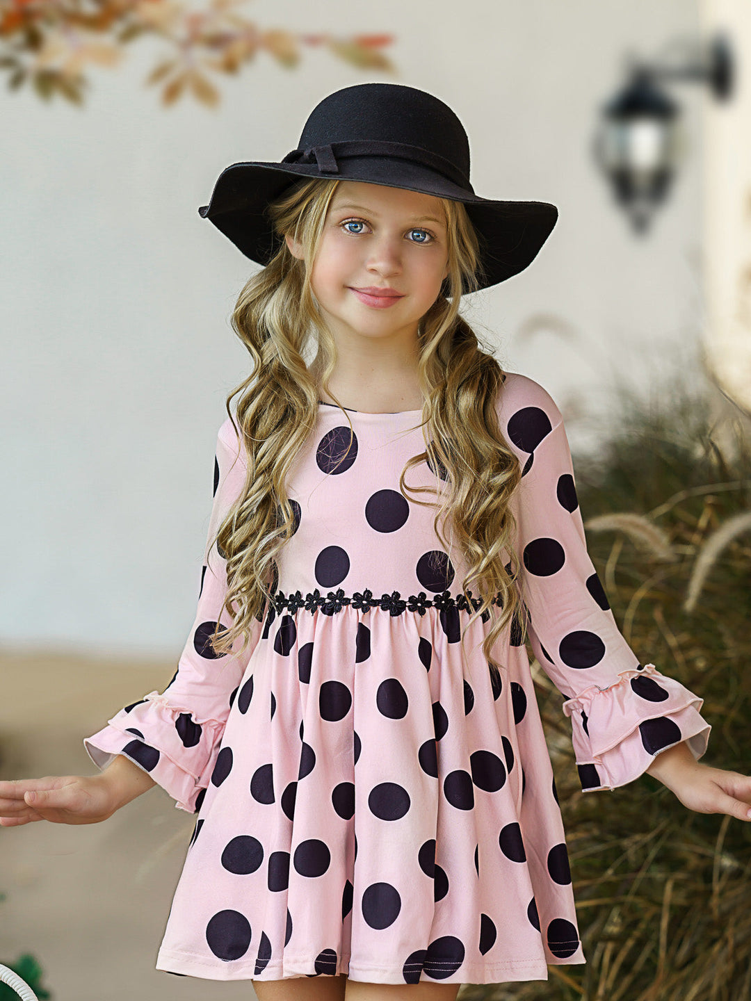 Little Girls Fall Polka Dot A-Line Ruffled Dress - Mia Belle Girls