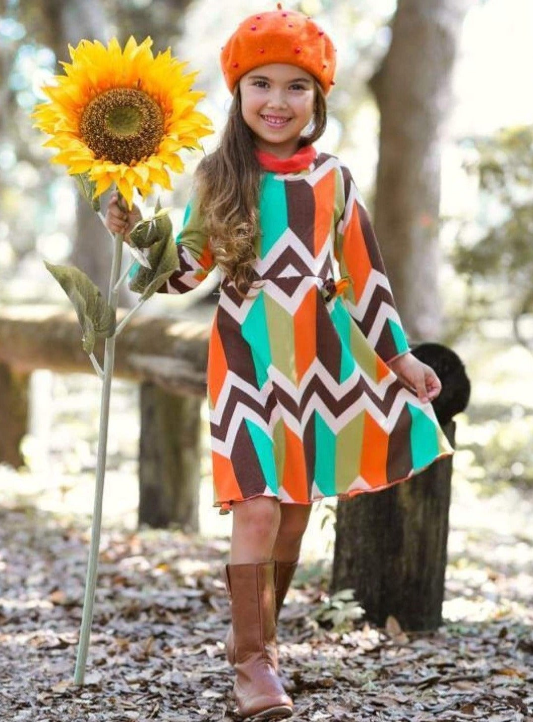 A sweet print makes this dress an adorable choice for your little one's fall wardrobe. A combination of colors will have her ready for the season in no time!