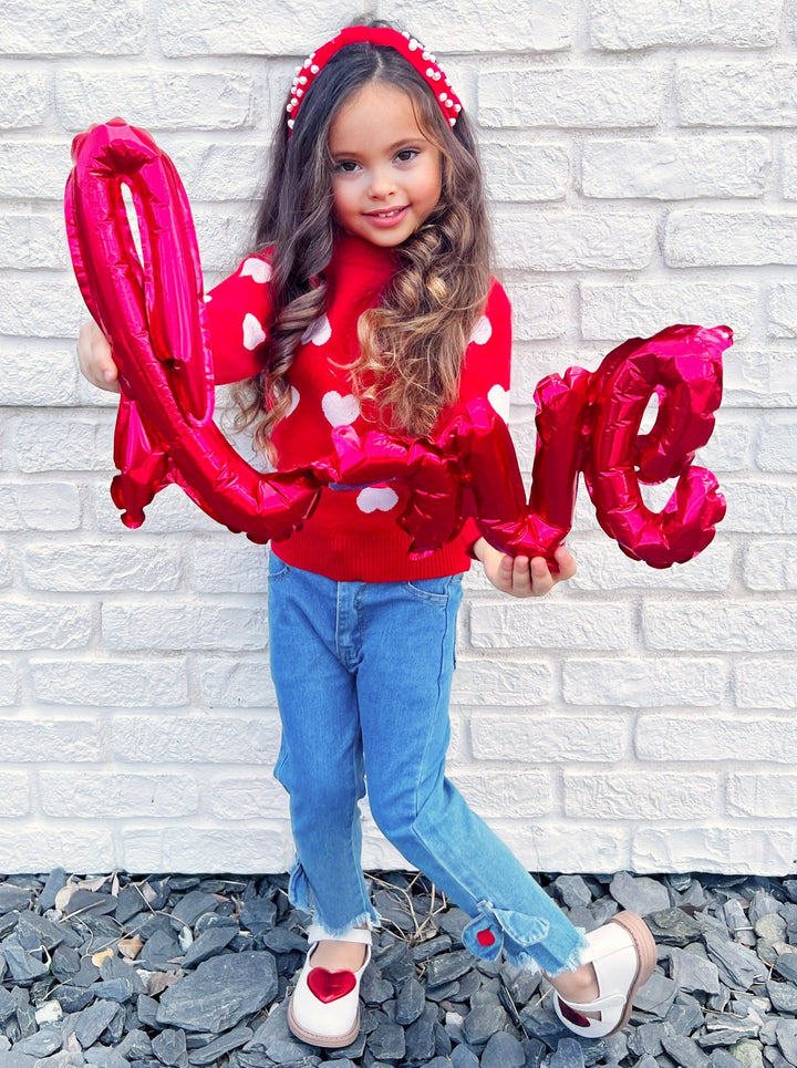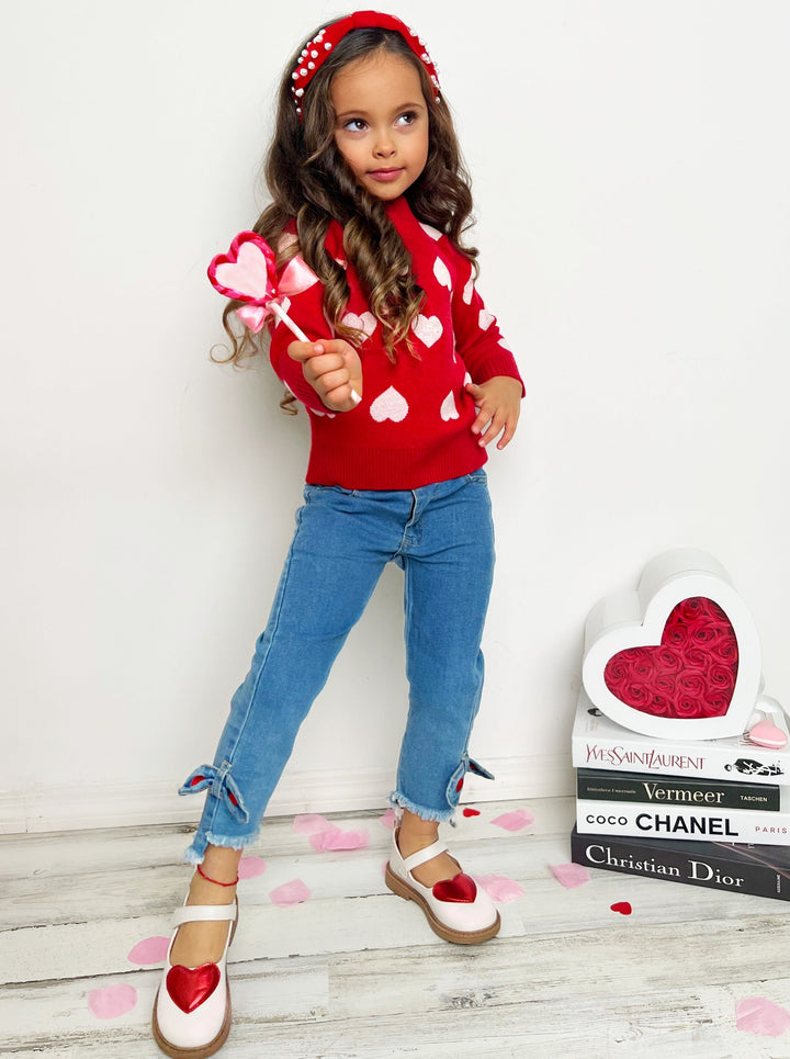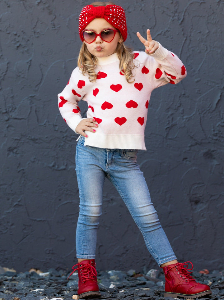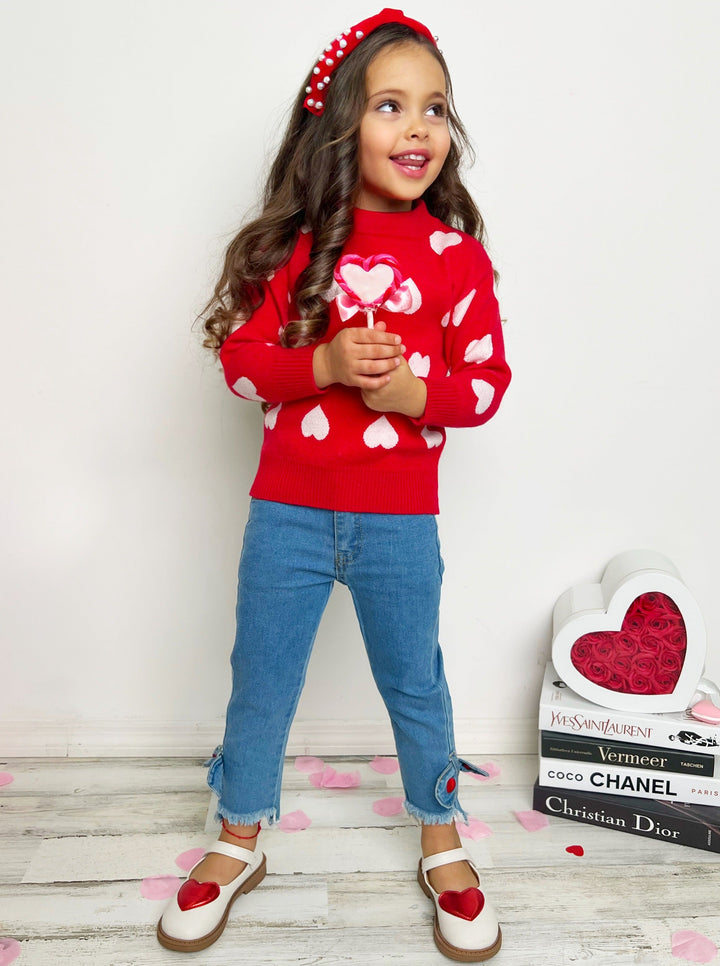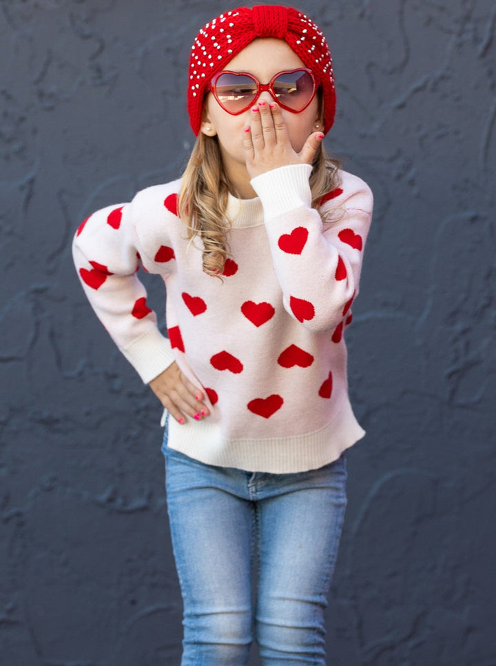 Kids Sweaters & Cardigans | Heart Print Knit Sweater | Mia Belle Girls