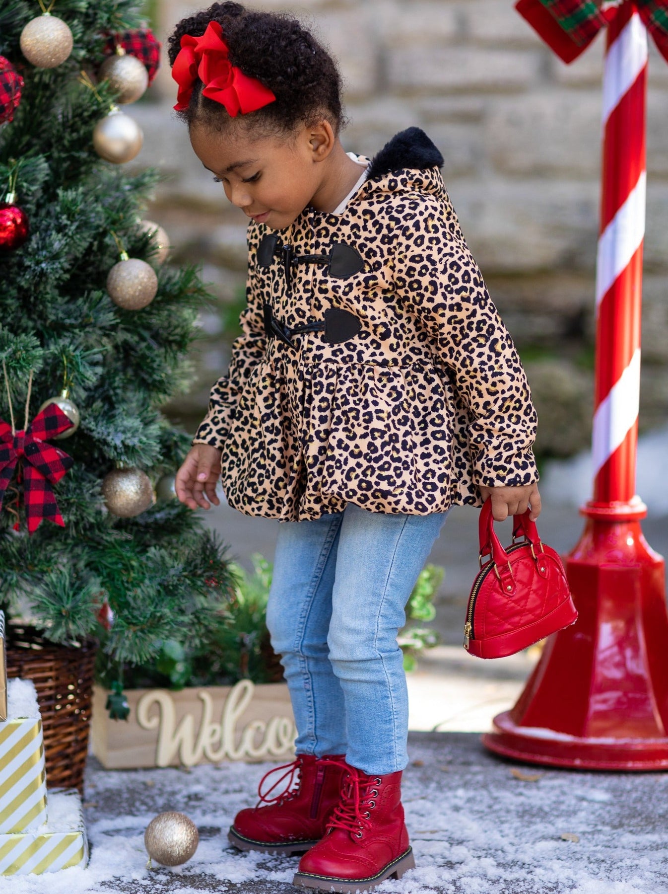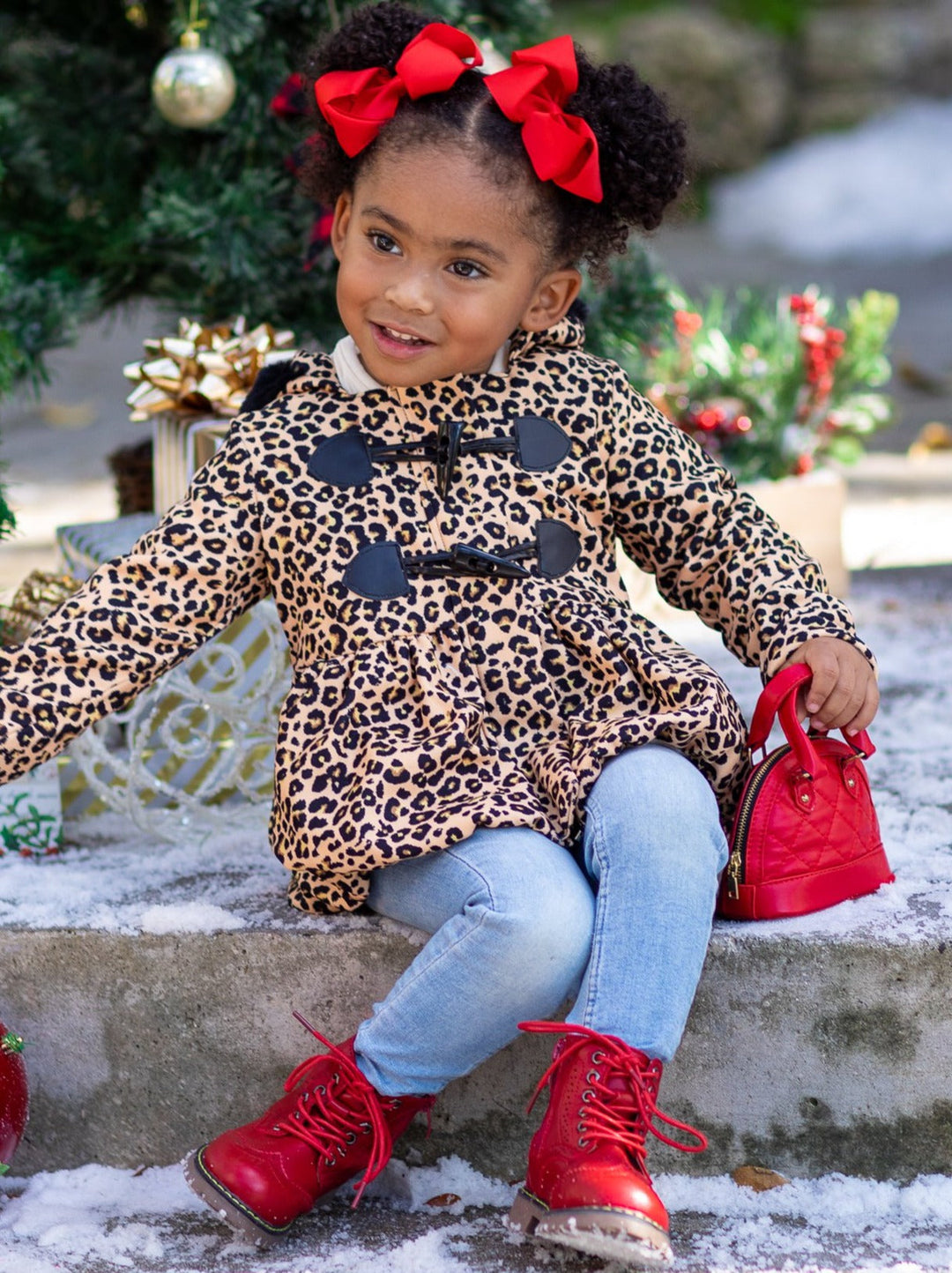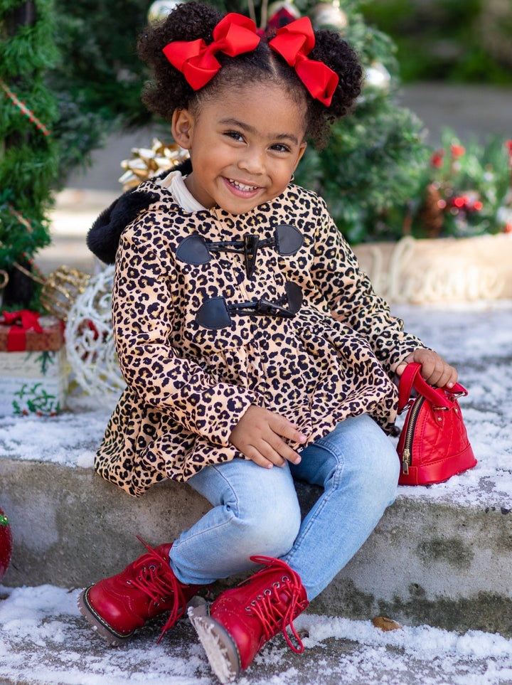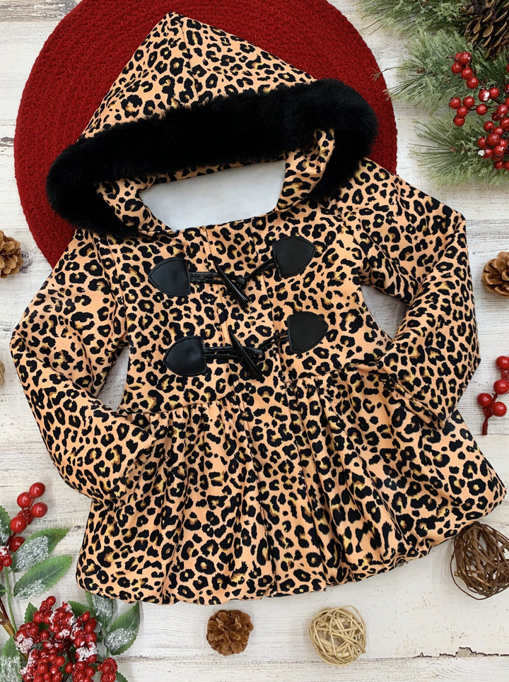 Girls Bundled Up Leopard Coat with Faux Fur Lined Hood