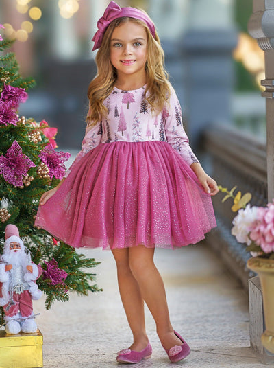 Mia Belle Girls Tree Print Tulle Tutu Dress | Girls Winter Dresses