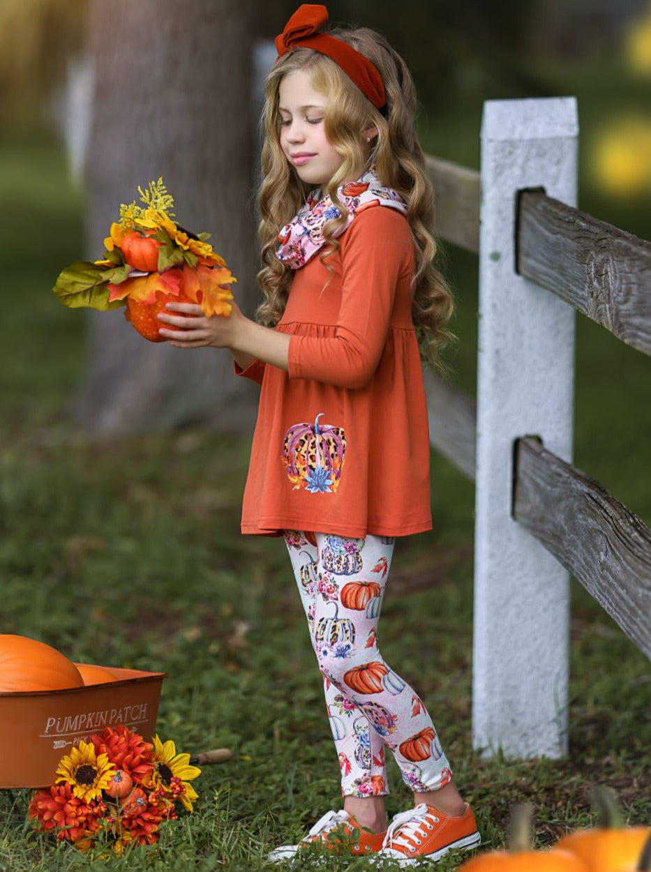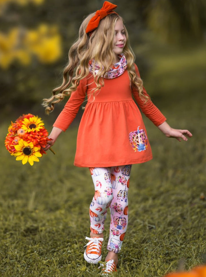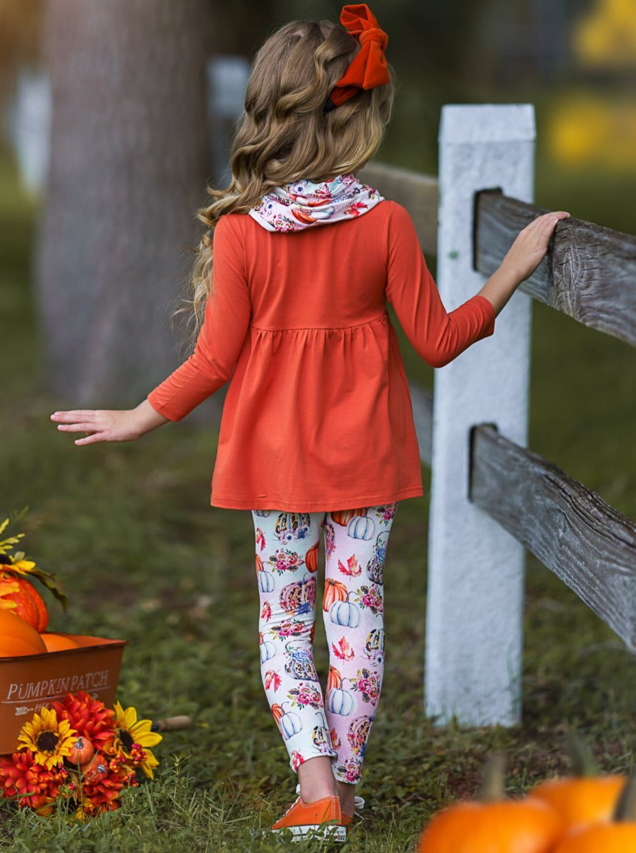 Pumpkin Everything Tunic, Leggings and Scarf Set