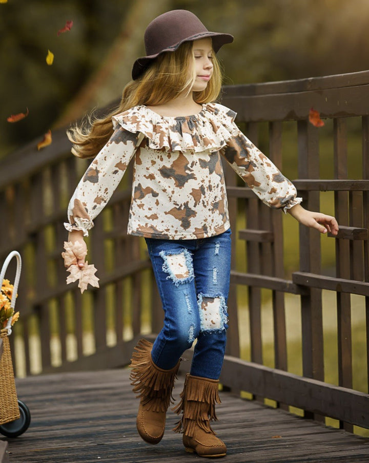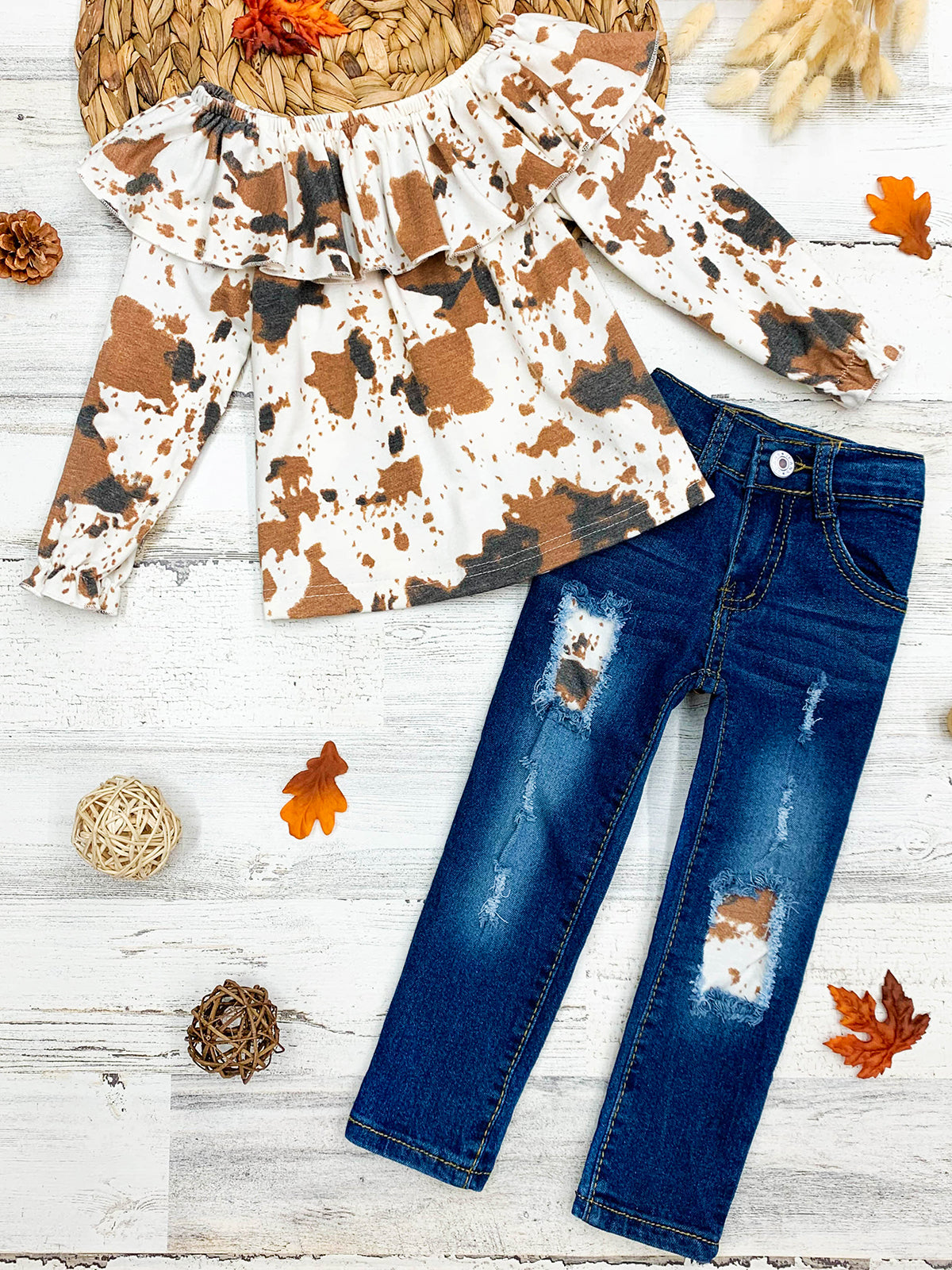 Cute Outfits For Girls | Cow Print Top and Patched Jeans Set