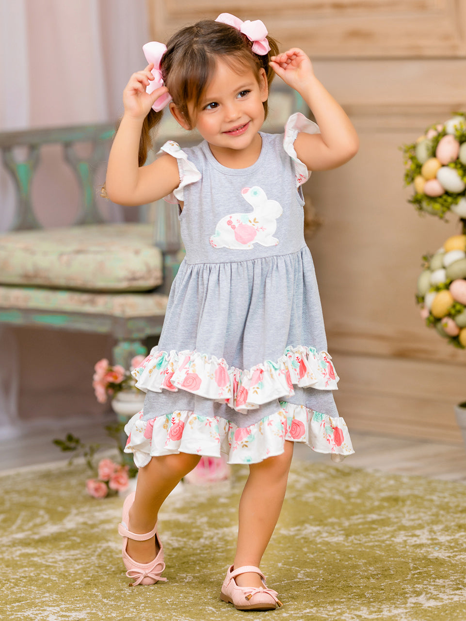 Mia Belle Girls Bunny Ruffle Tiered Midi Dress | Easter Dresses