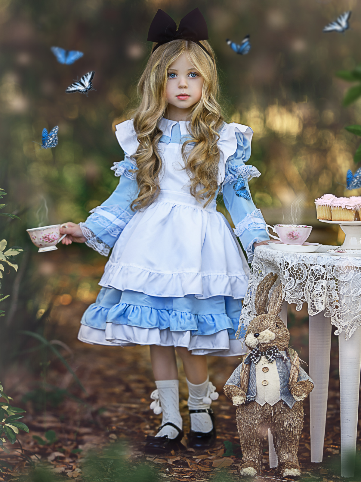 Girls Enchanted Alice Ruffled 3-Piece Costume Dress
