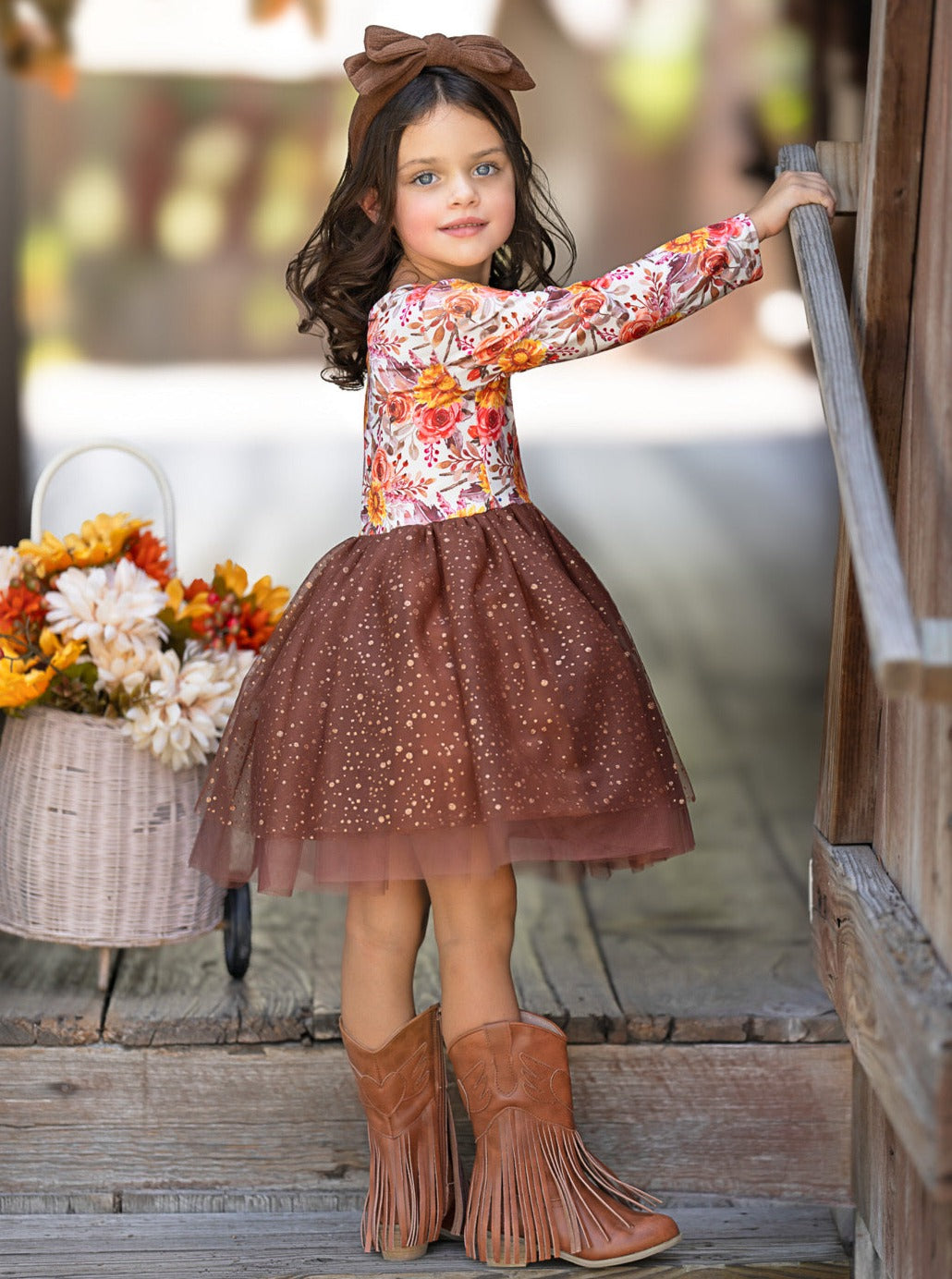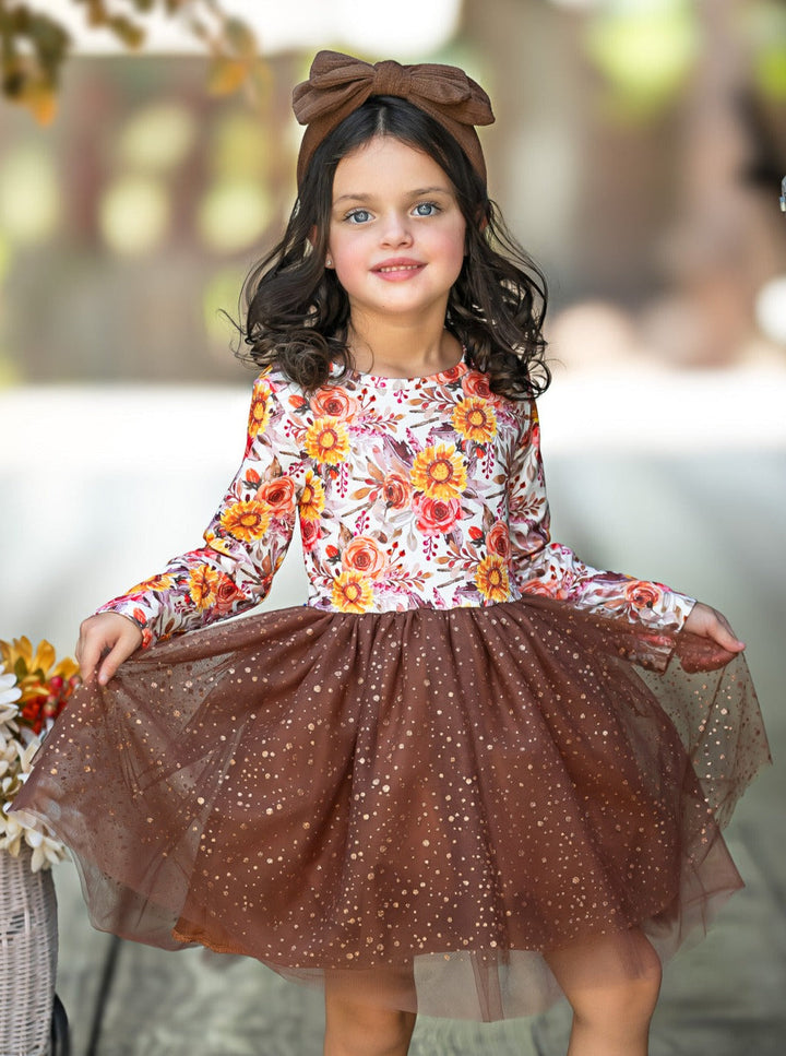 • Beautiful autumn floral tutu dress perfect for your little one's fall festivities