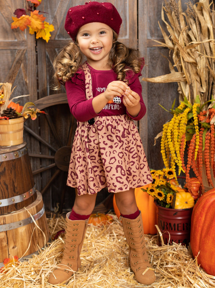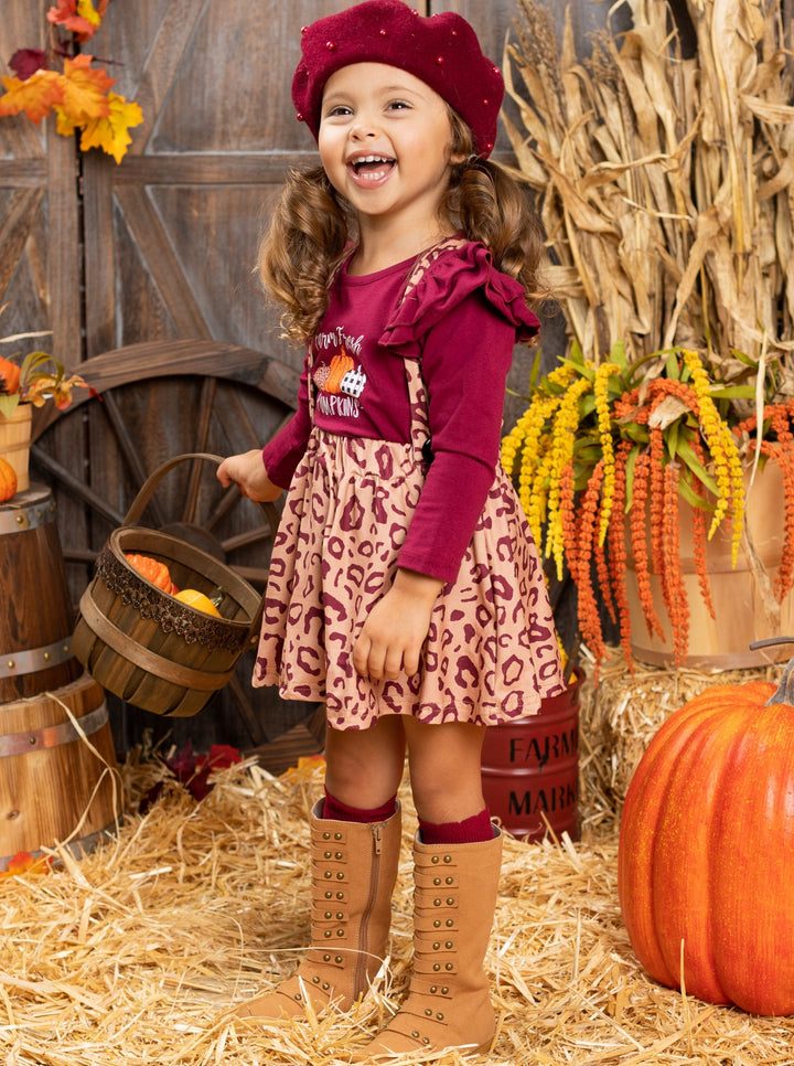 Farm Fresh Pumpkins Ruffled Top And Leopard Pinafore Skirt Set