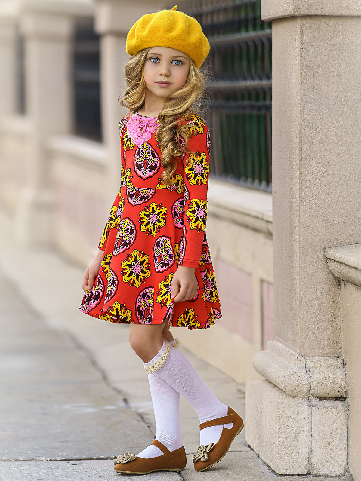 Now THESE are flowers she’ll want to pick! This fall floral freshness enhanced with a bow and scoop back detail will make her the brightest & trendiest cutie in the garden.