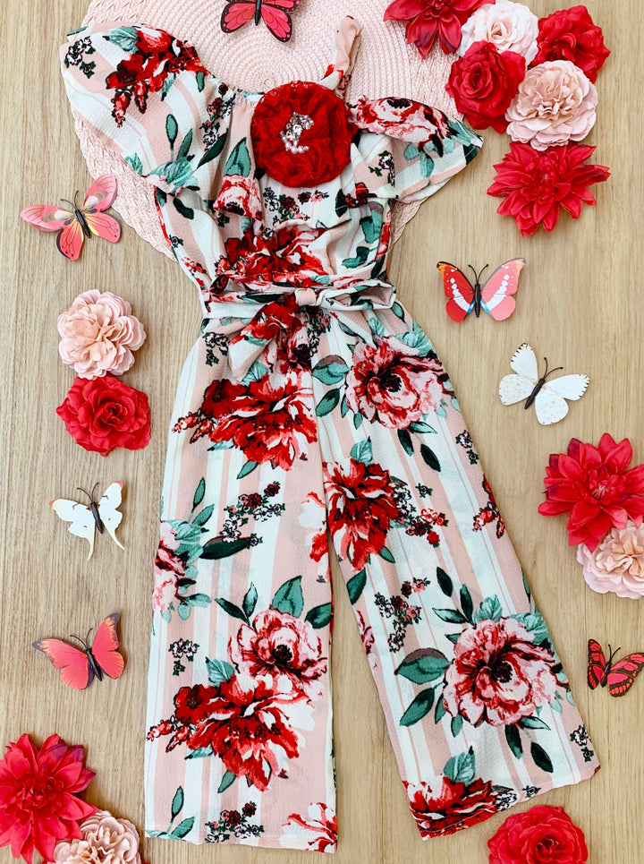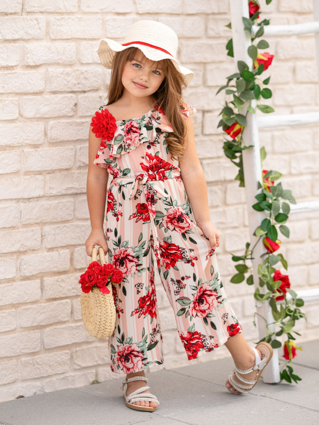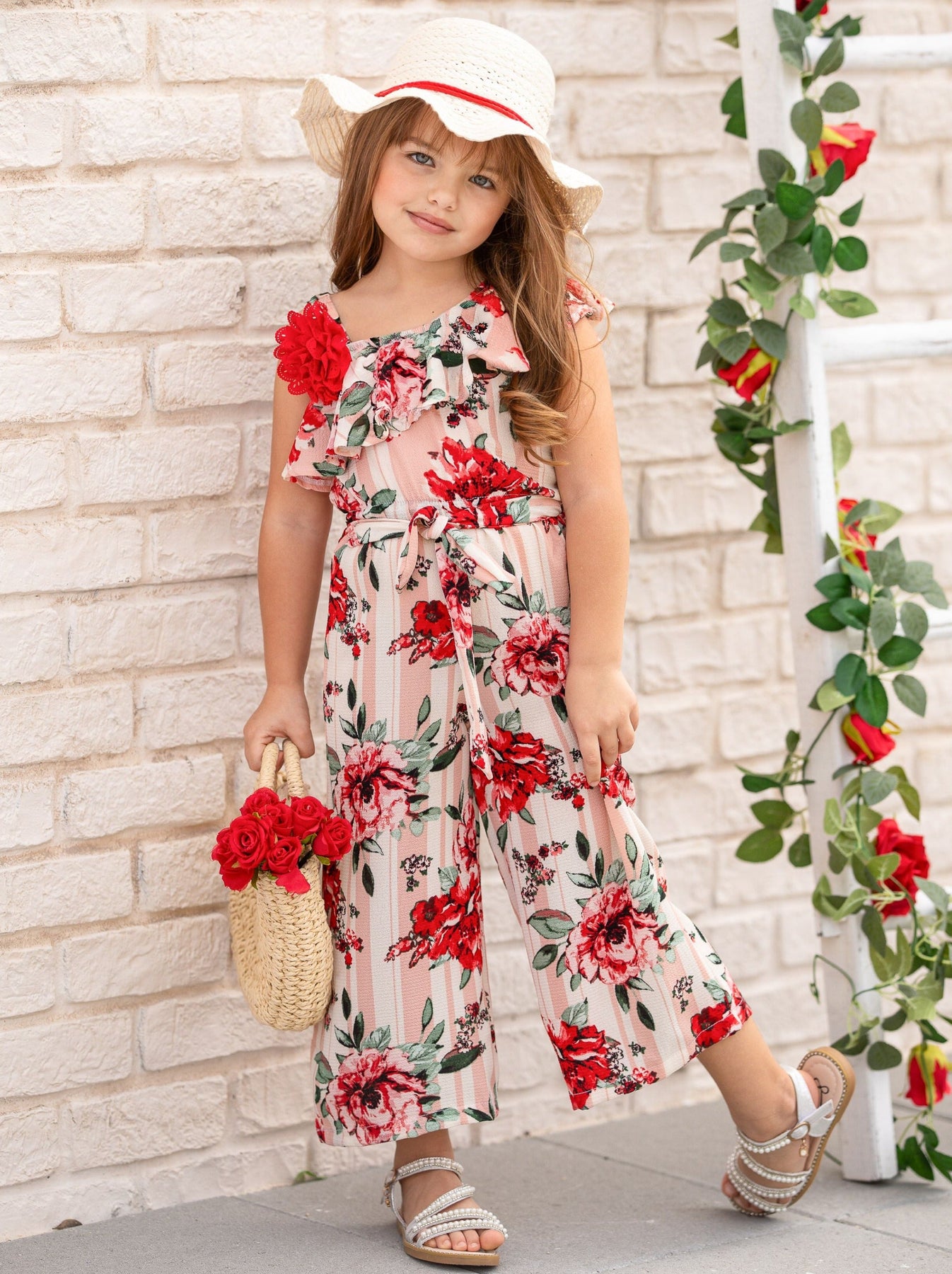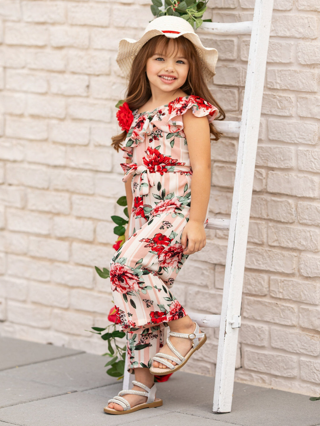 Cute Toddler Outfit | Girls Floral Striped One Shoulder Jumpsuit