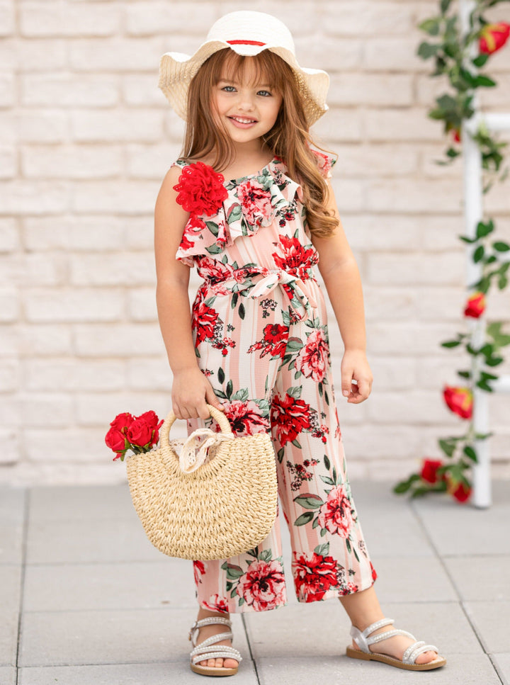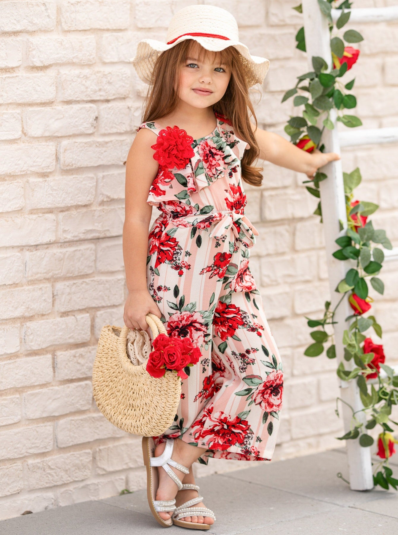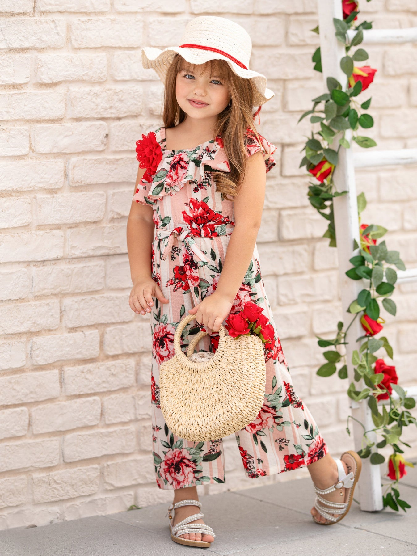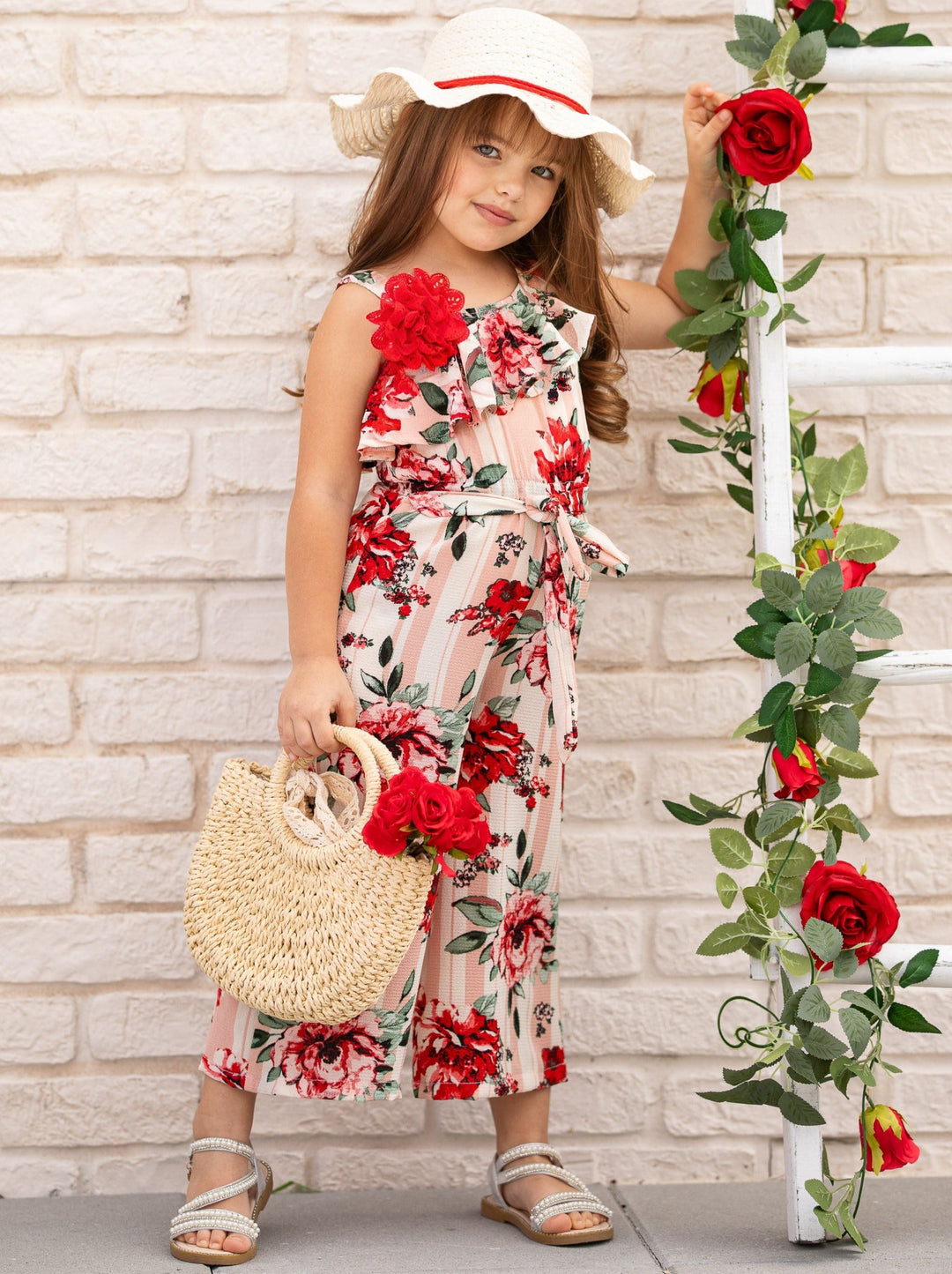 Cute Toddler Outfit | Girls Floral Striped One Shoulder Jumpsuit
