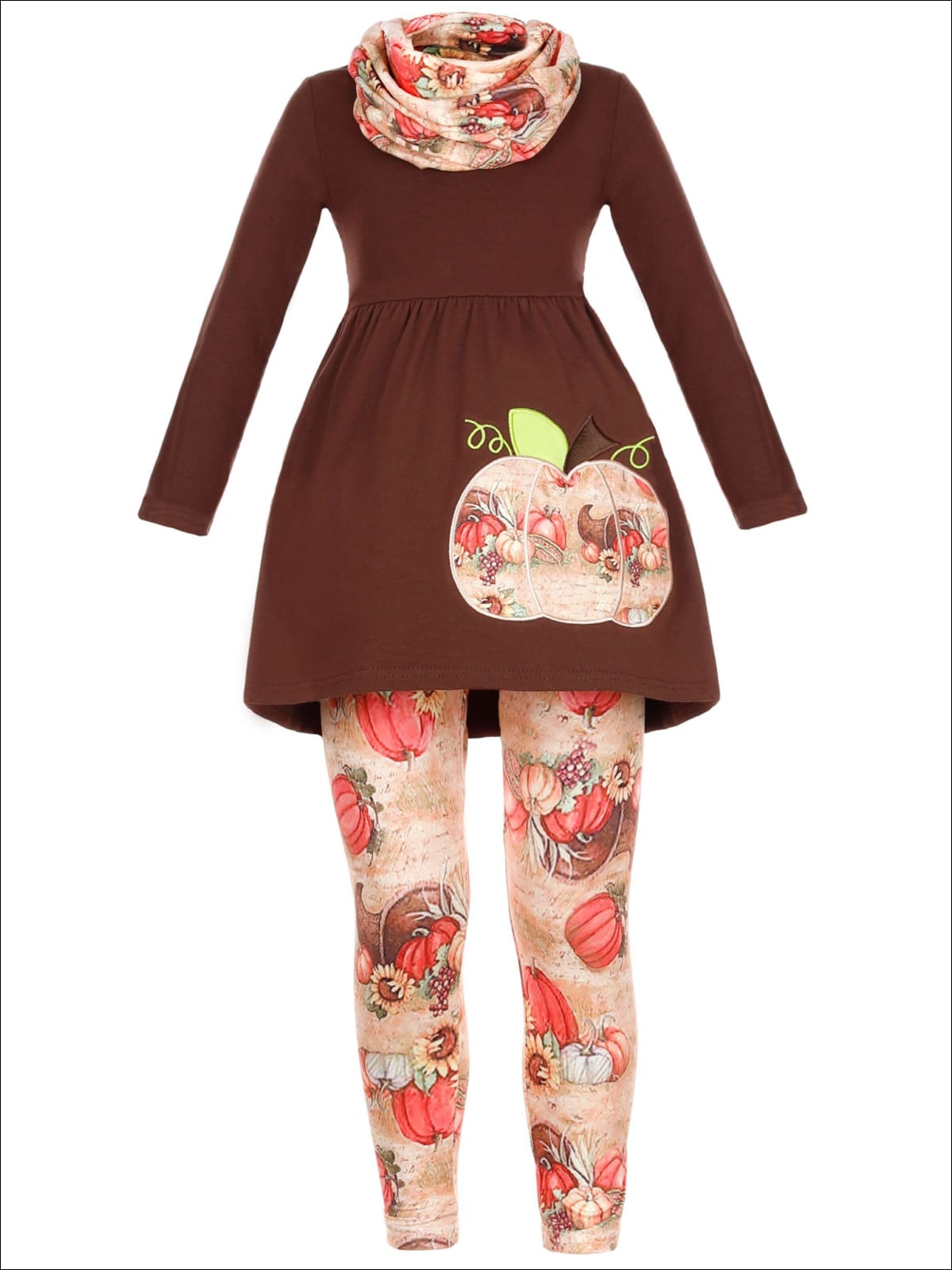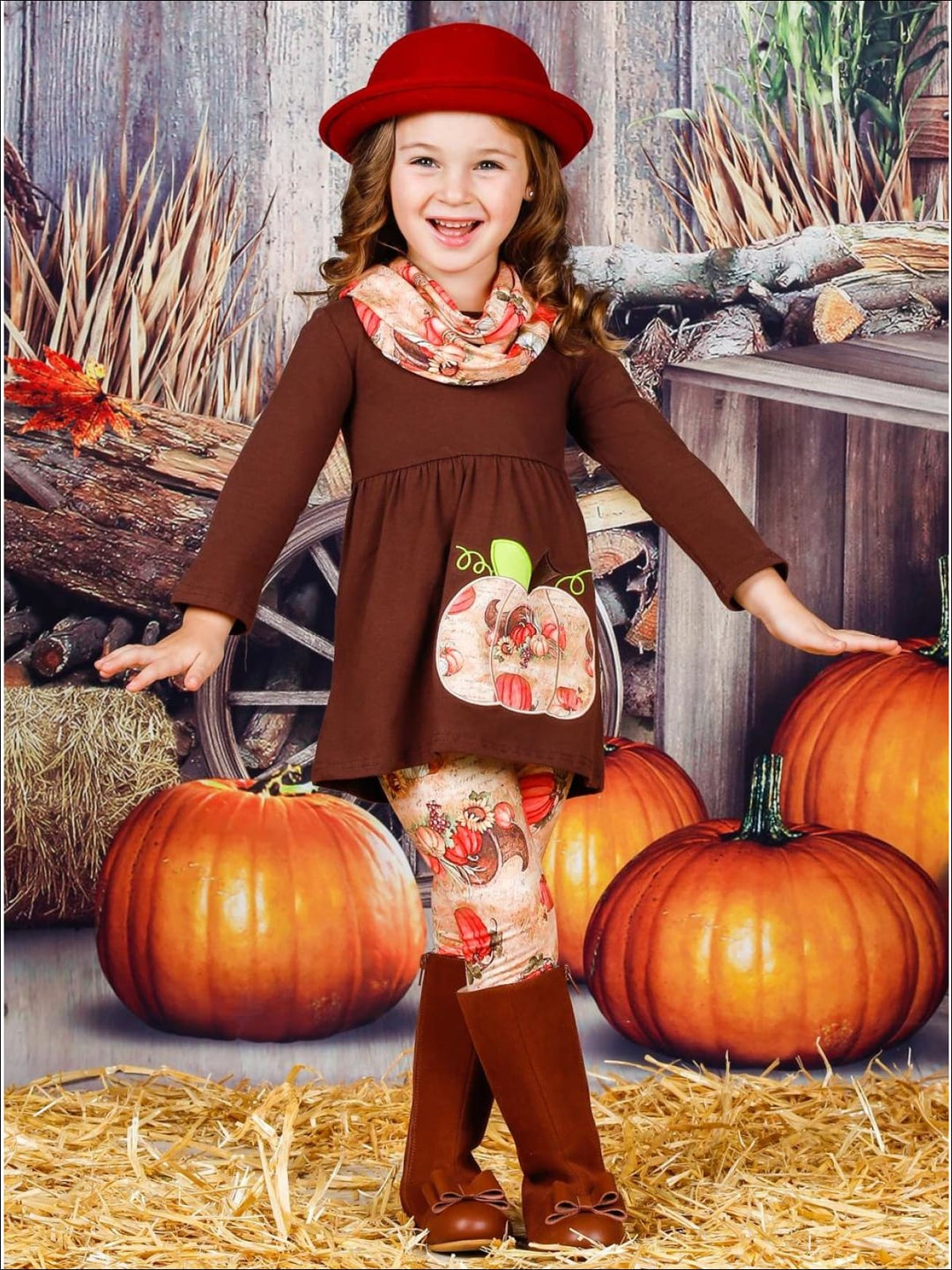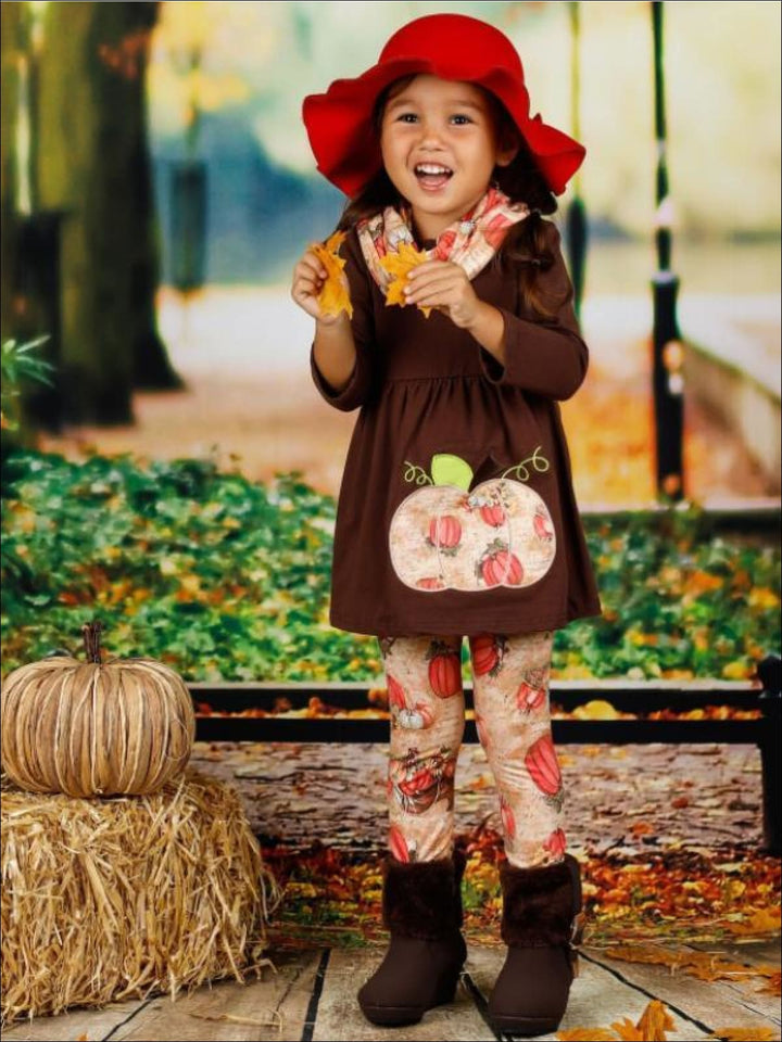 This precious set will definitely get her fall ready! Your little pumpkin will definitely be the cutest in the patch wrapped in soft fabric, long sleeves and an infinity scarf to keep her warm.