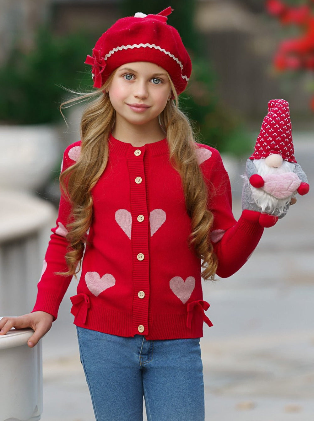 Toddler Valentine's Clothes | Girls Heart Cardigan & Bowed Jeans Set